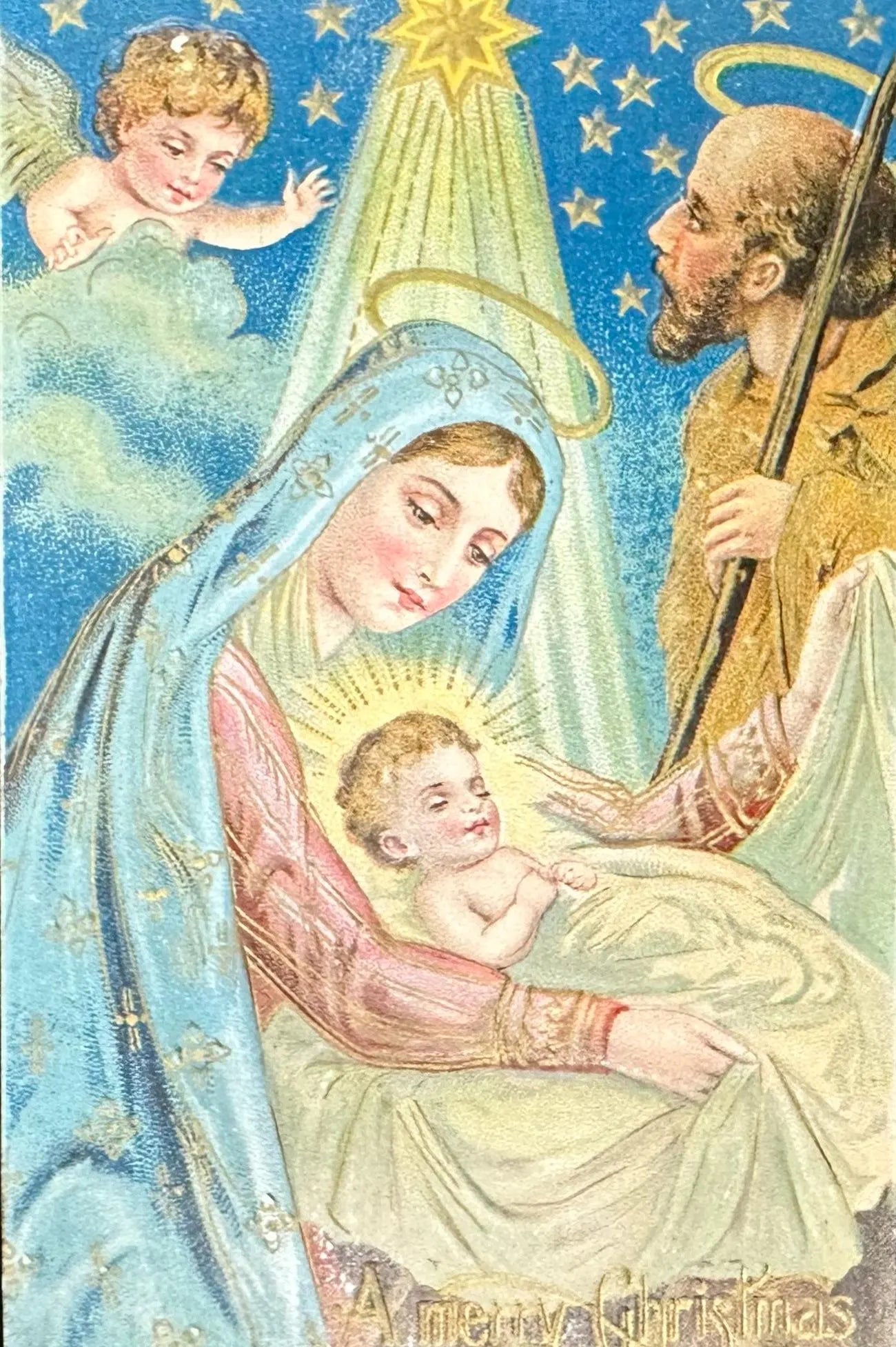 Holy Family Starry Night Madonna with Child - Vintage Postcard