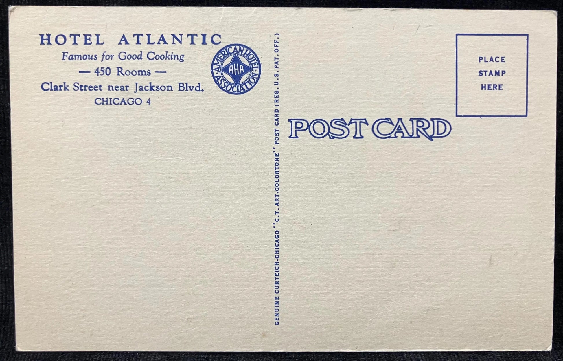 Hotel Atlantic - Clark St. Near Jackson Boulevard, Chicago, Illinois - Vintage Hotel Postcard