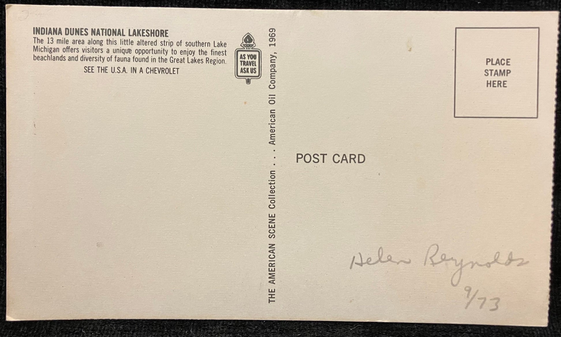 Back: INDIANA DUNES NATIONAL LAKESHORE THe 13 mile area along this little altered strip of southern Lake Michigan offers visitors a unique opportunity to enjoy the finest beach lands and diversity of fauna found in the Great Lakes Region. SEE THE U.S.A. IN A CHEVROLET As travel Ask us