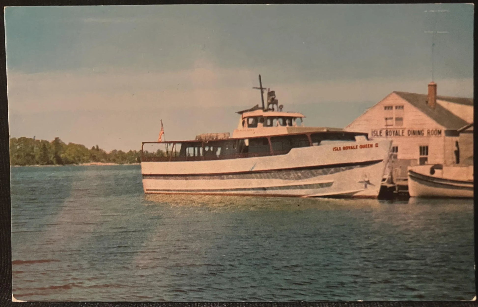 On front: A photo of Isle Royale Queen II in the Port of Copper Harbor, Michigan