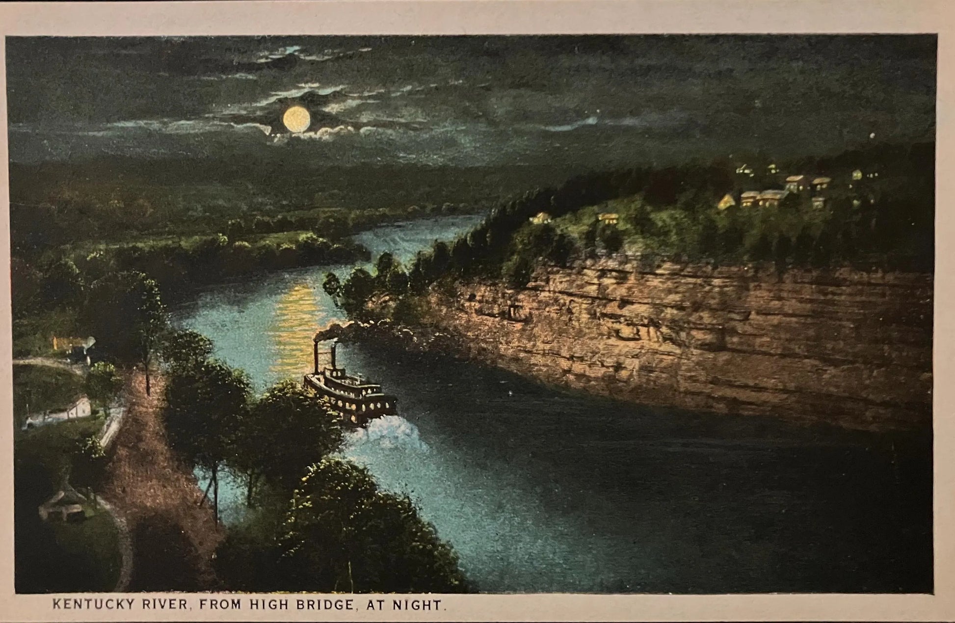 Kentucky River - From High Bridge at Night - Vintage Scenic Postcard