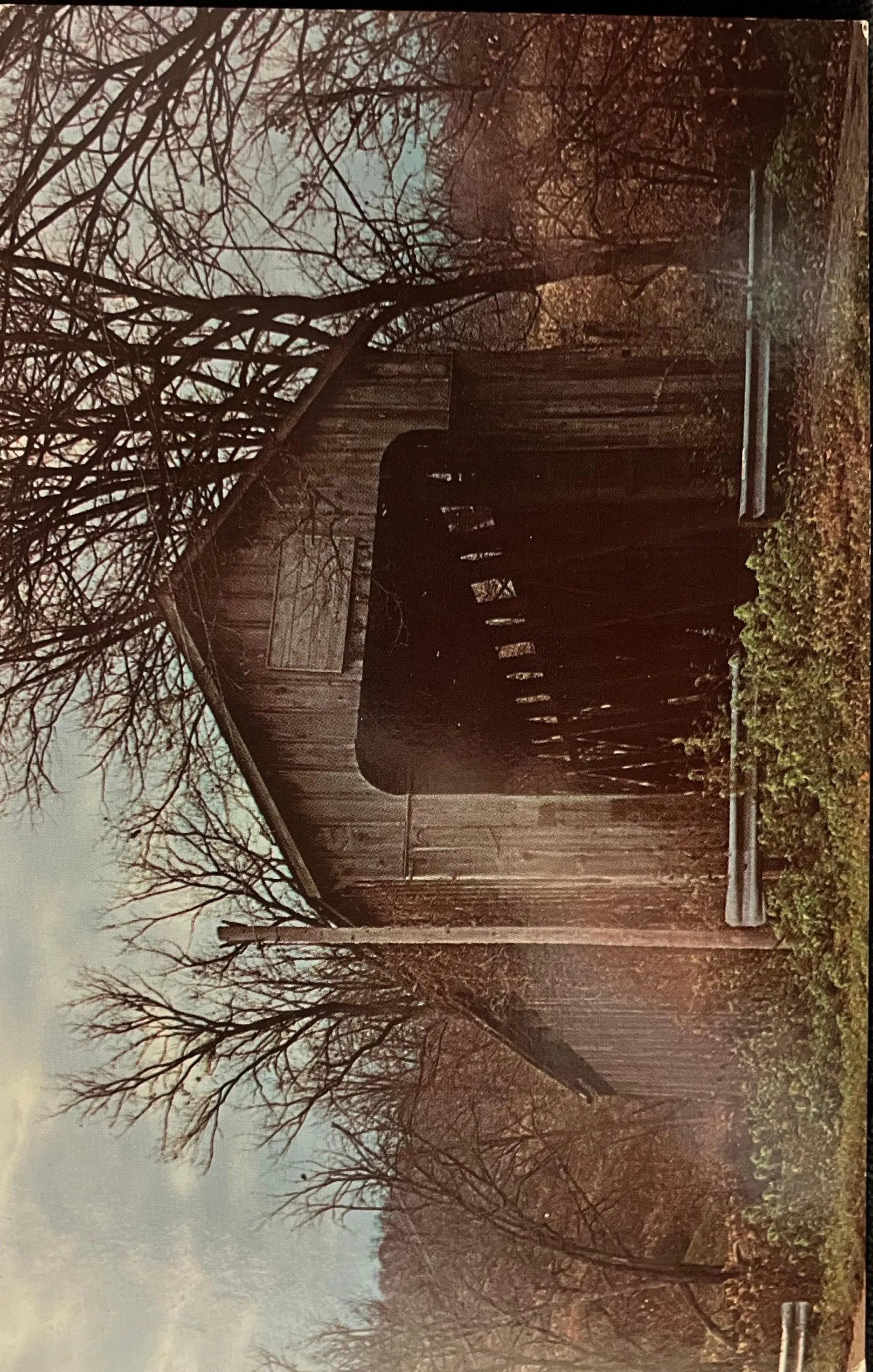 On front: A photo of Lower Blue Creek Bridge near Brooksville, Indiana