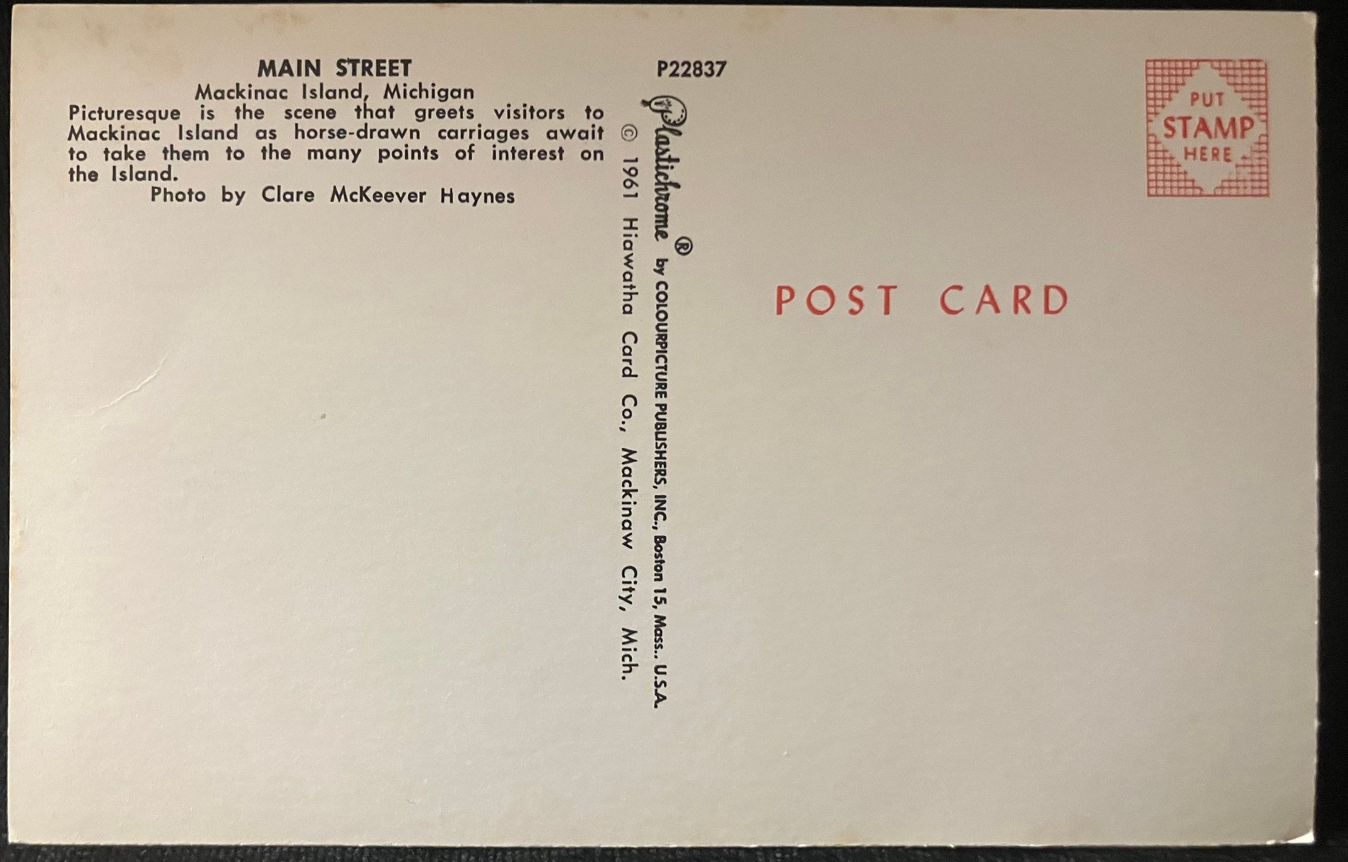Main Street - Mackinac Island, Michigan - Photo by Clare McKeever Haynes - Vintage Postcard