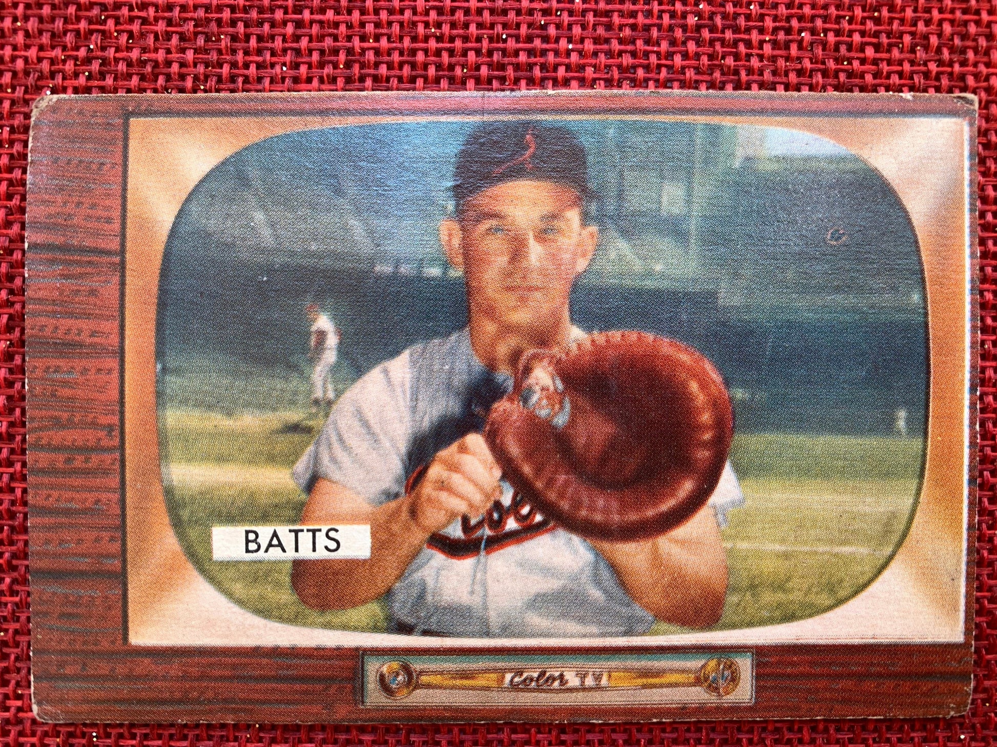 In 1955 Bowman Gum Company released their final set of baseball cards. These cards were unlike any of Bowman's previous sets, the cards were styled after a colored television set, the horizontal image of the player bordered by a wood grain frame. The back of the cards includes the card number, the players name, team, and position. The back also includes the players vital stats, such as their batting and fielding records. The back of many in this set vary, they either contain a paragraph about the player, or an article written by the player themself.