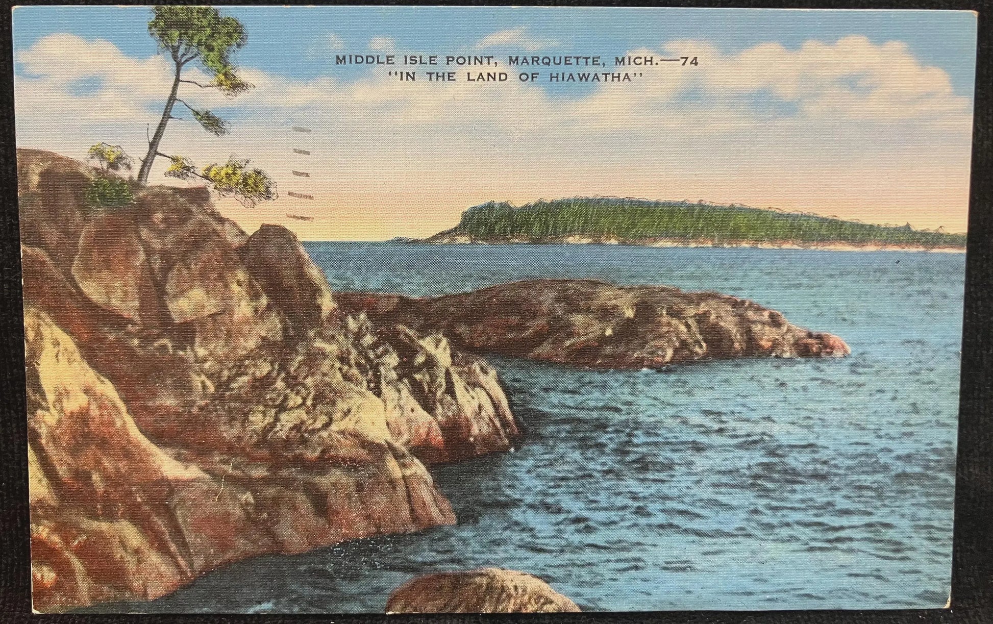 Middle Isle Point, Marquette, Michigan “In the Land of Hiawatha” - Vintage Lakeside Postcard