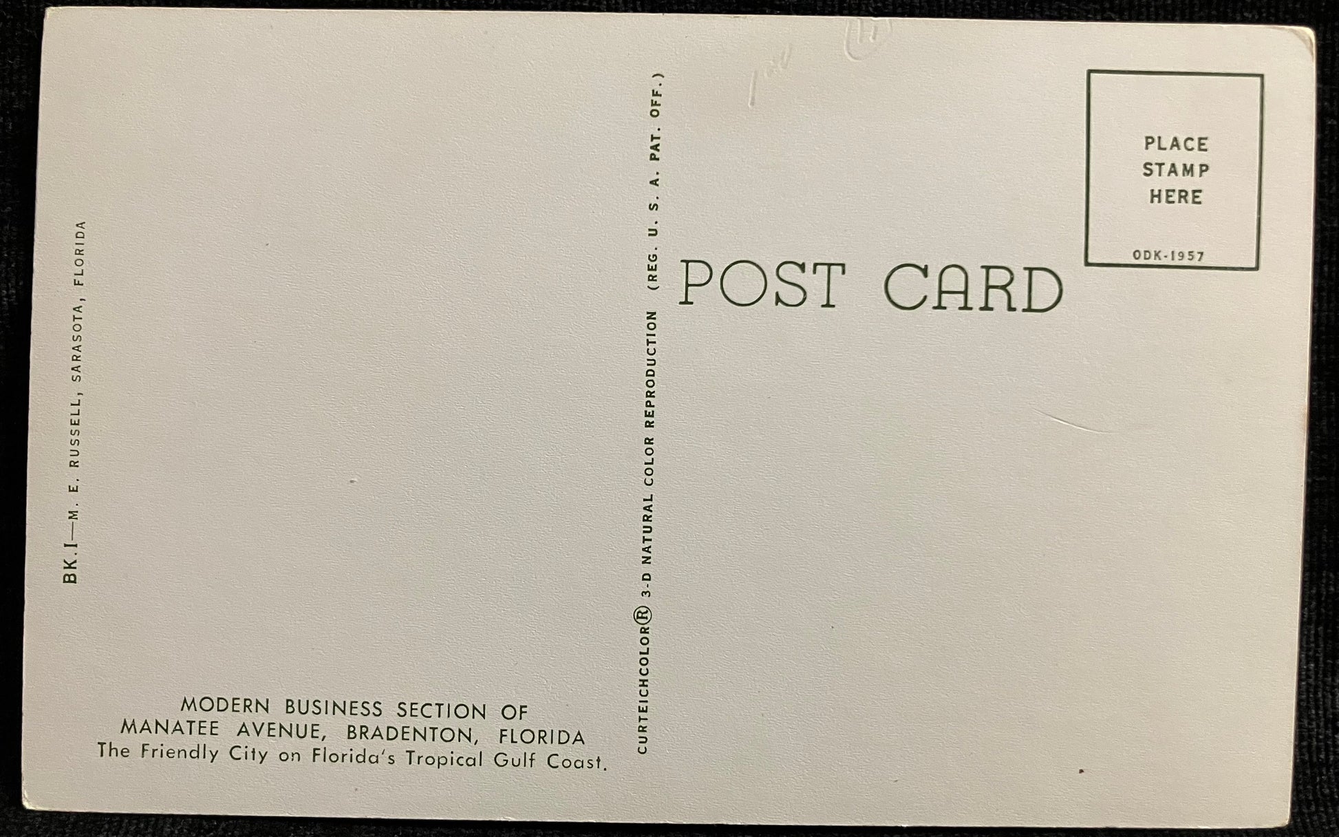 Back: Modern Business Section of Manatee Avenue, Bradenton, Florida The Friendly City on Florida’s Tropical Gulf Coast