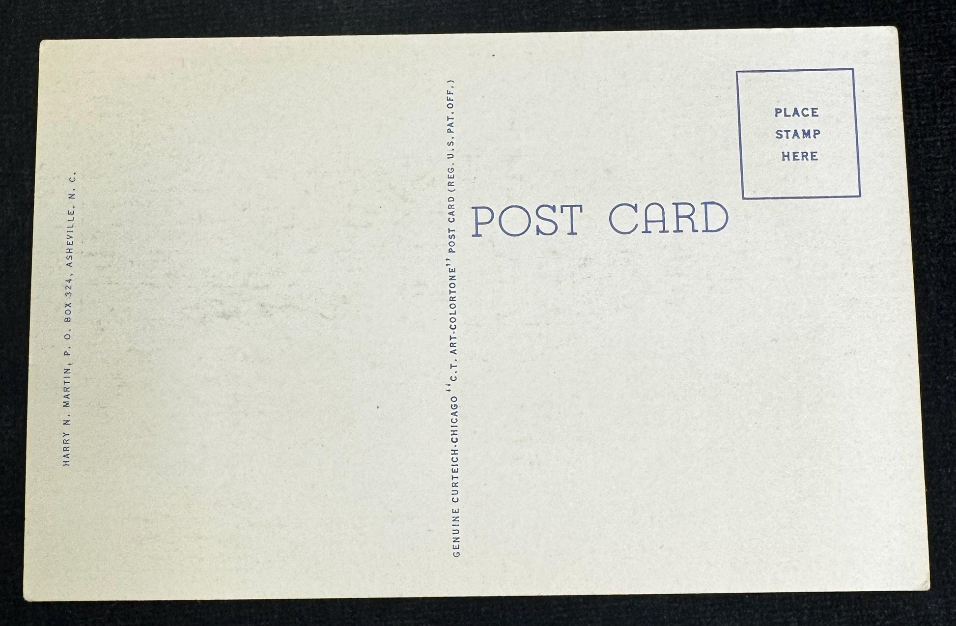 This vintage postcard is in good condition, slight wear on edges. The front has an illustrations of Mountain View Hotel in Gatlinburg Tennessee.