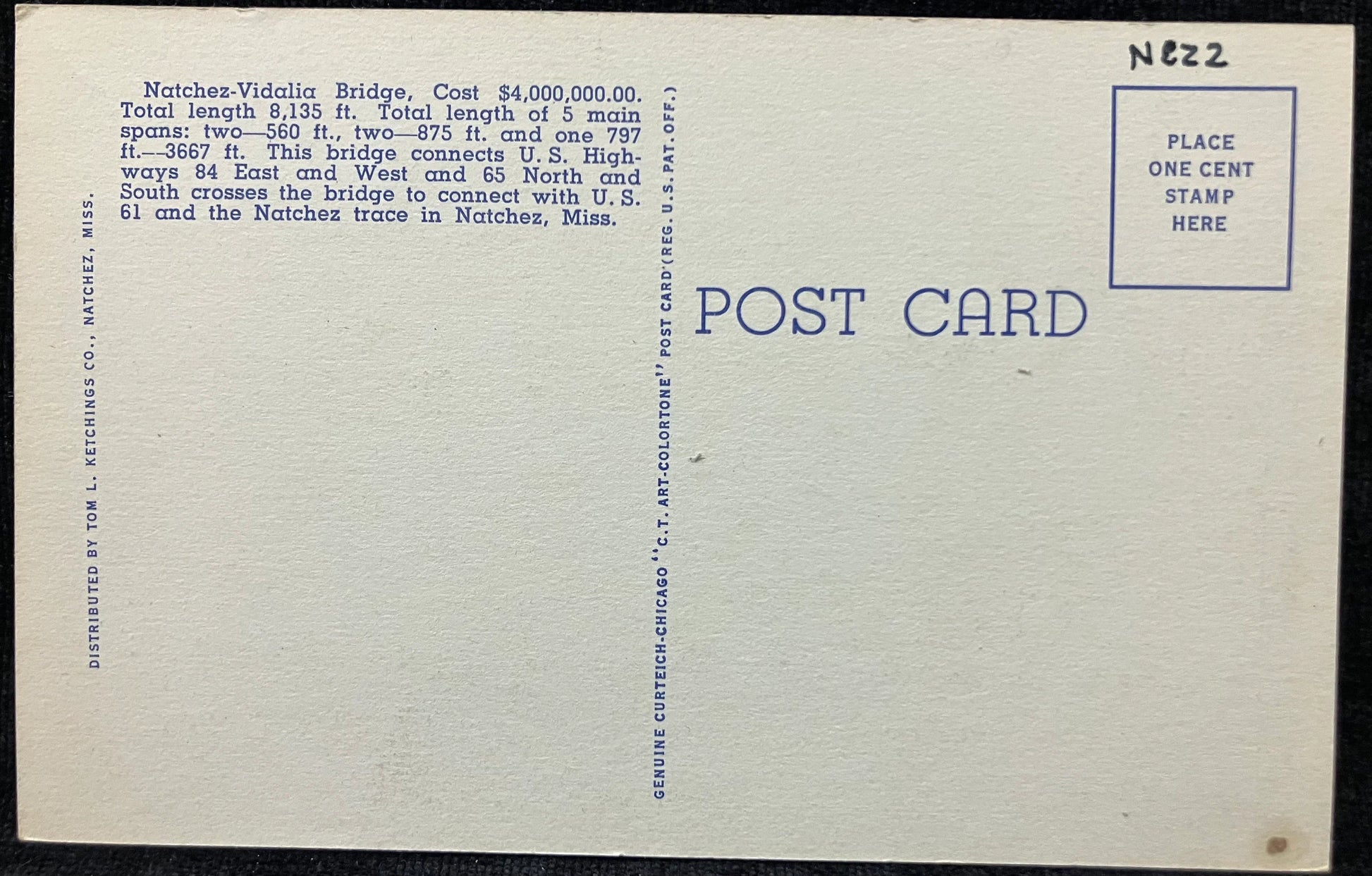 Natchez-Vidalia Bridge, Natchez, Mississippi - Vintage Bridge Postcard