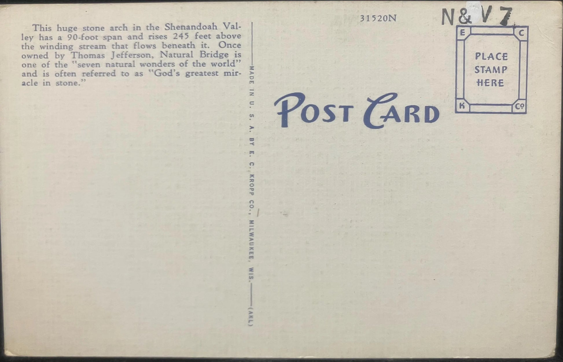 Natural Bridge, Virginia - Vintage Landmark Postcard