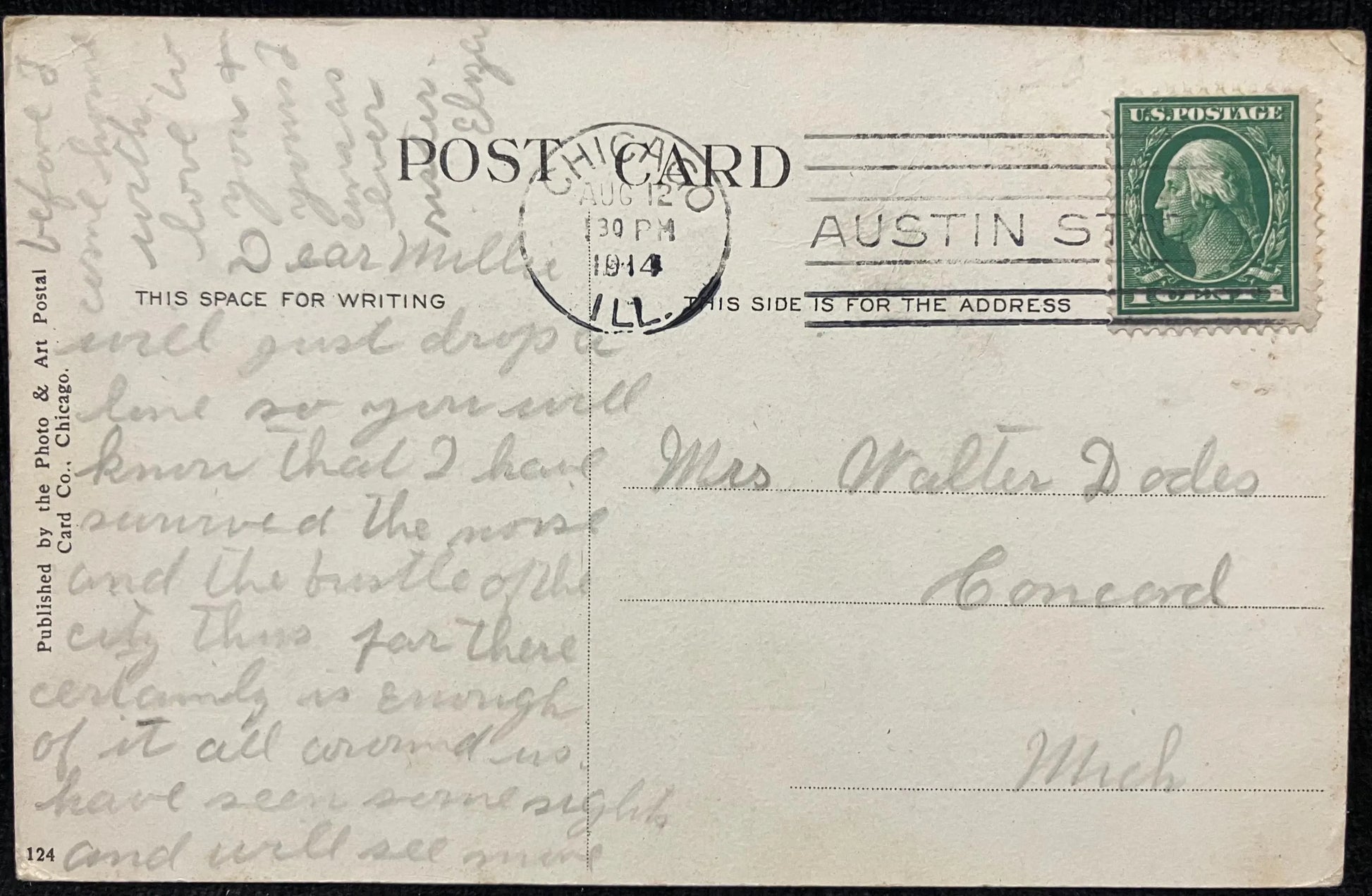 Mailed: Postmark: 1914 green one cent George Washington stamp