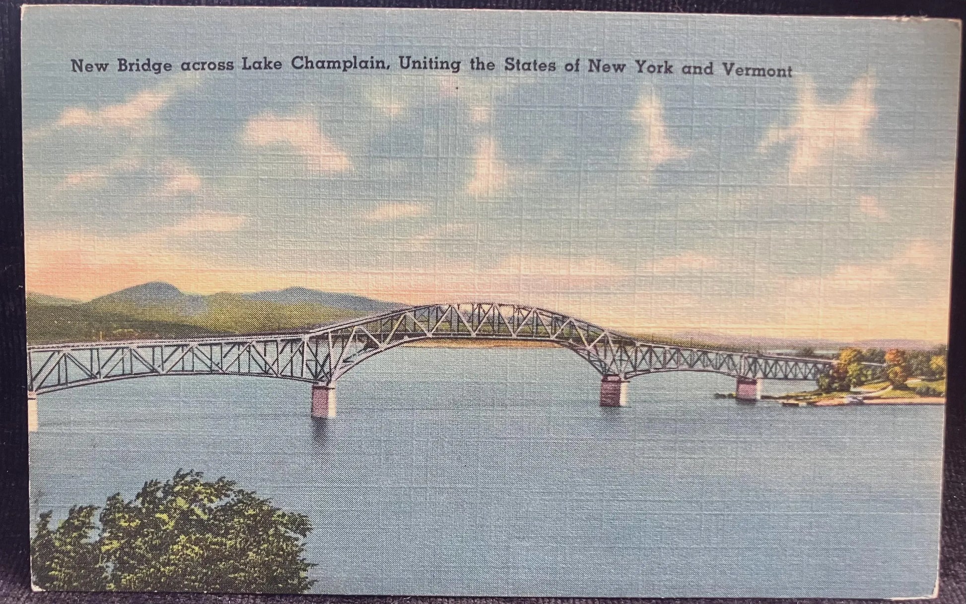 On front: New Bridge Across Lake Champlain Uniting the States of New York and Vermont