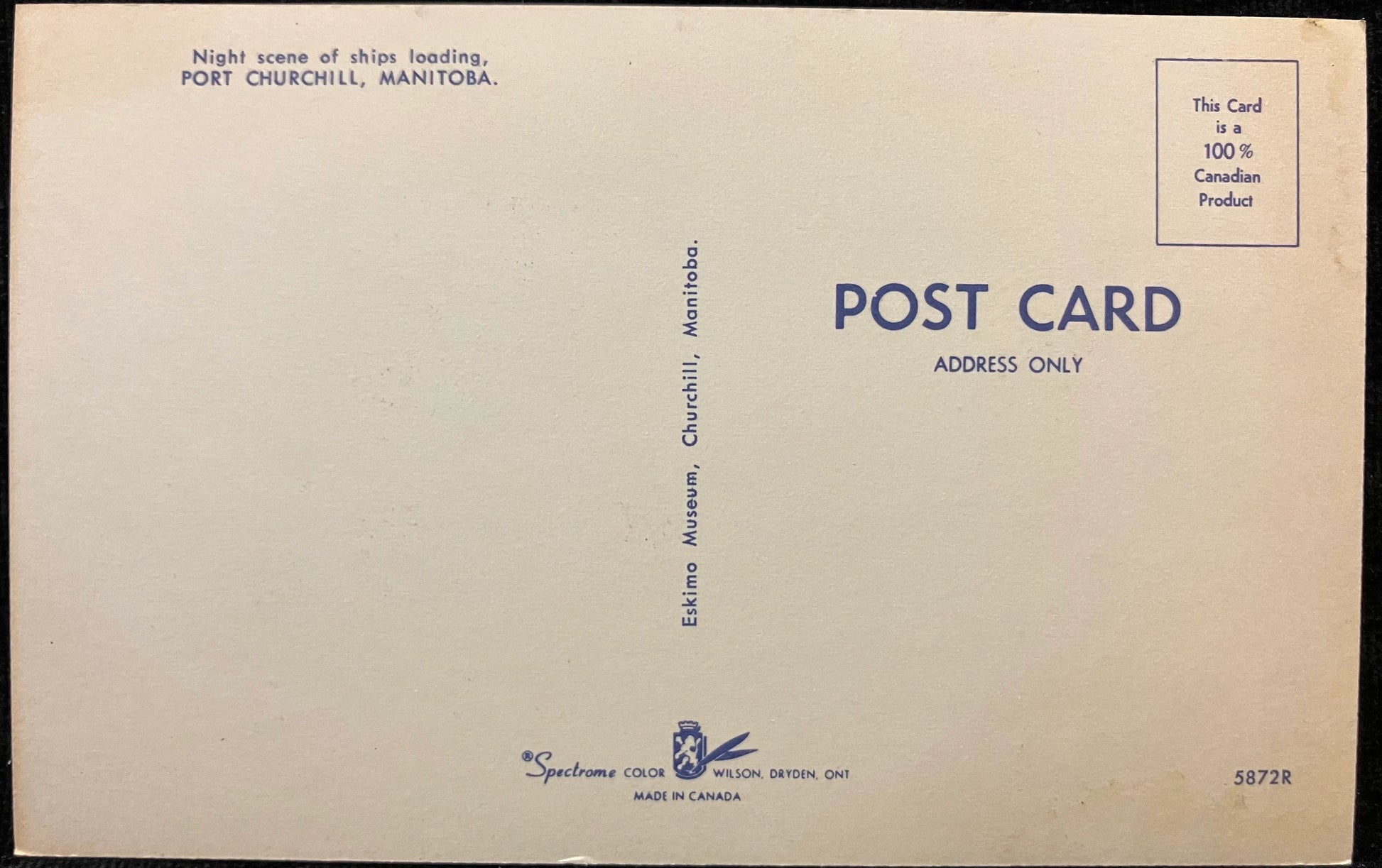 On back: Night Scene of Ships Loading Port Churchill, Manitoba
