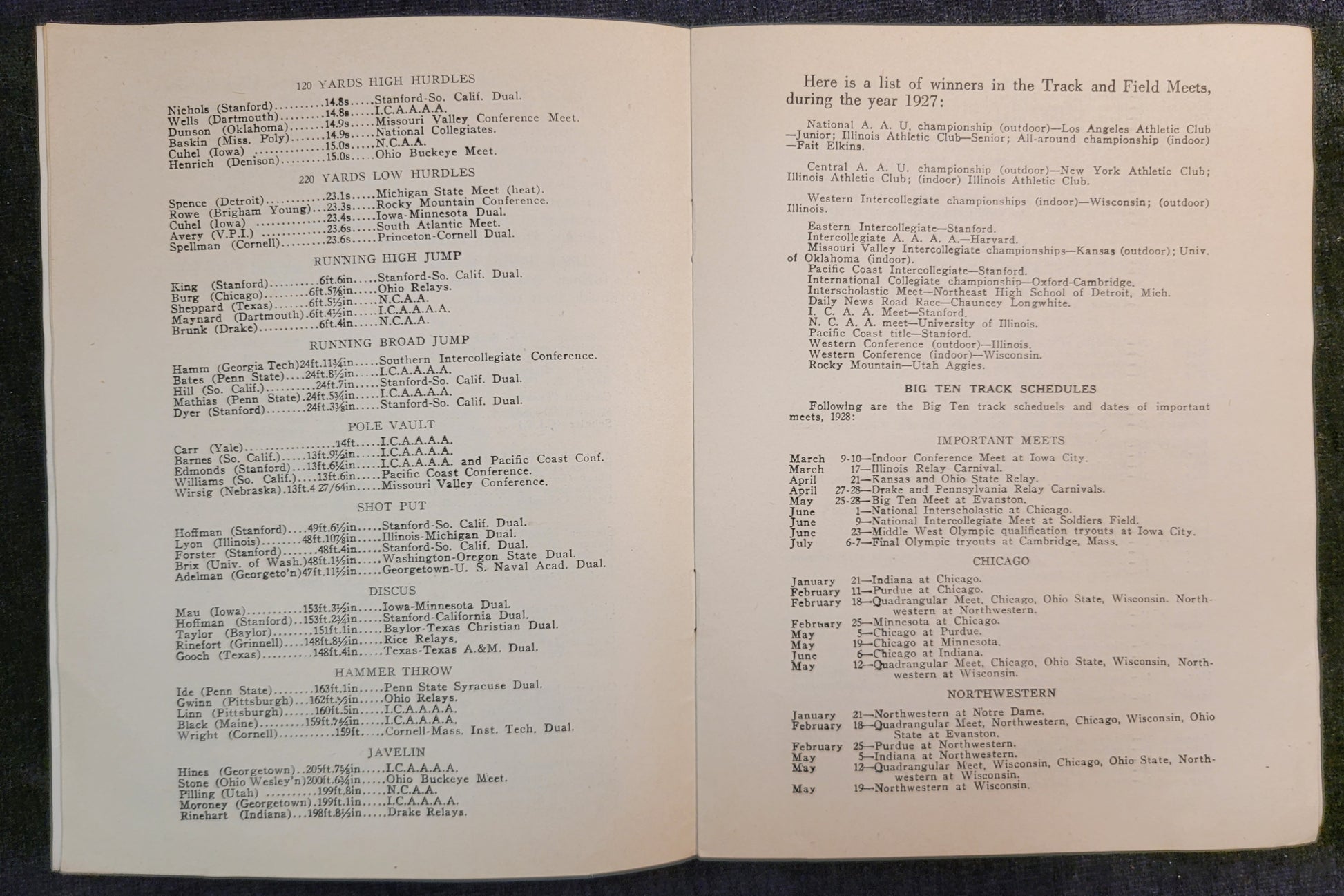 Official National Collegiate Athletic Association Track and Field Rules - Late 1920s Rule Book