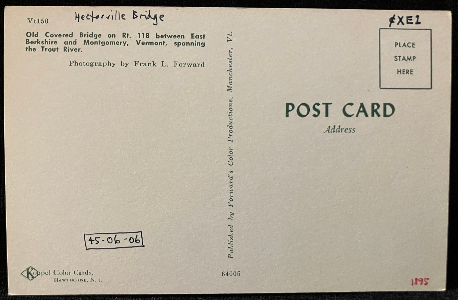 Back: Old Covered Bridge on Rt. 118 between East Berkshire and Montgomery, Vermont, spanning the Trout River.