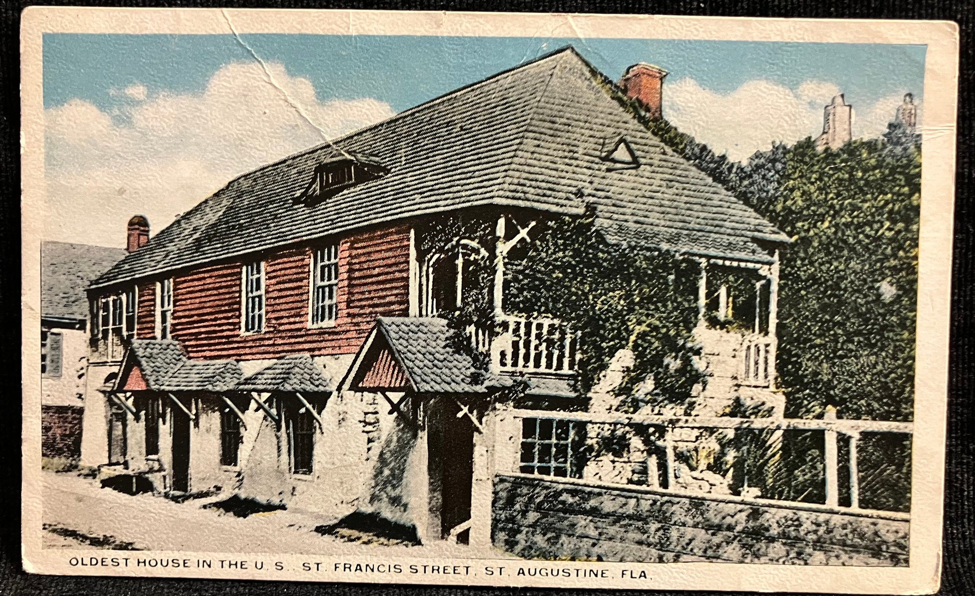 Back: This building is recognized the country over as St. Augustine’s oldest house. Visited by almost every tourist to the old city. It contains a very interesting and valuable collection of antiques.
