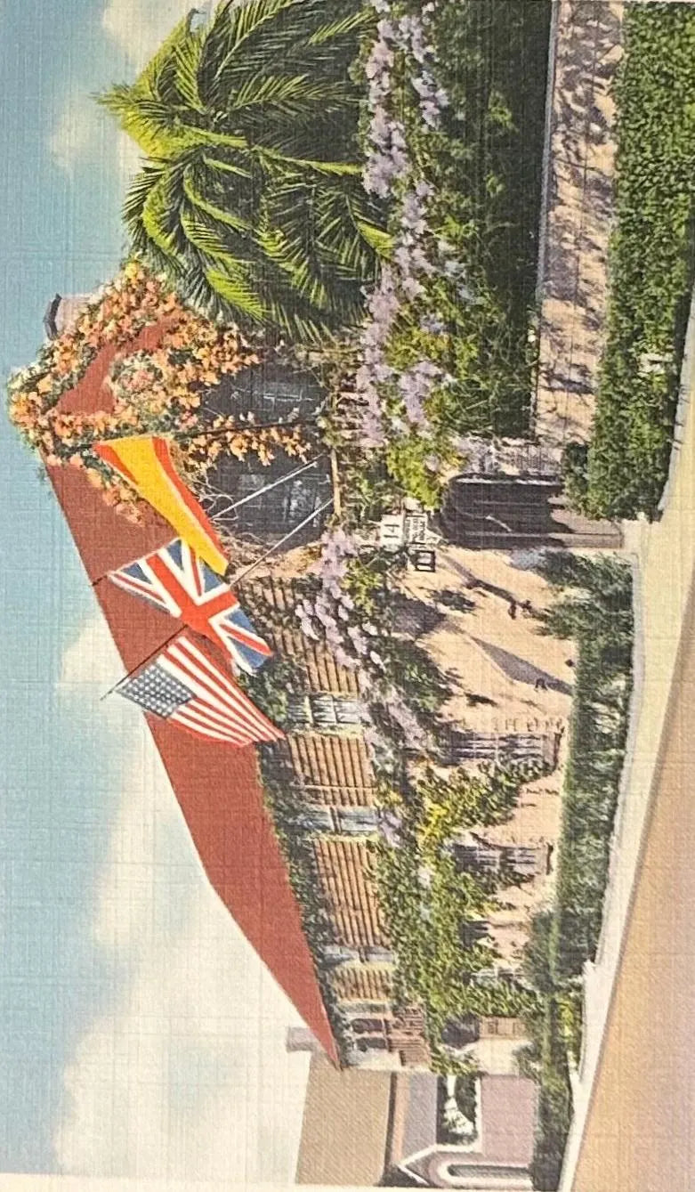 Back Information: oldest House- Property of the St. Augustine Historical Society, and Institute of Science, St. Augustine, Fla. On St. Francis Street, beside the old barracks and five minutes walk from the Plaza, directly south along the Sea Wall to the end. Then look to the right and you will see The House Under Four Flags. Open daily from 8 A.M. to 6 P.M. Guide in attendance.