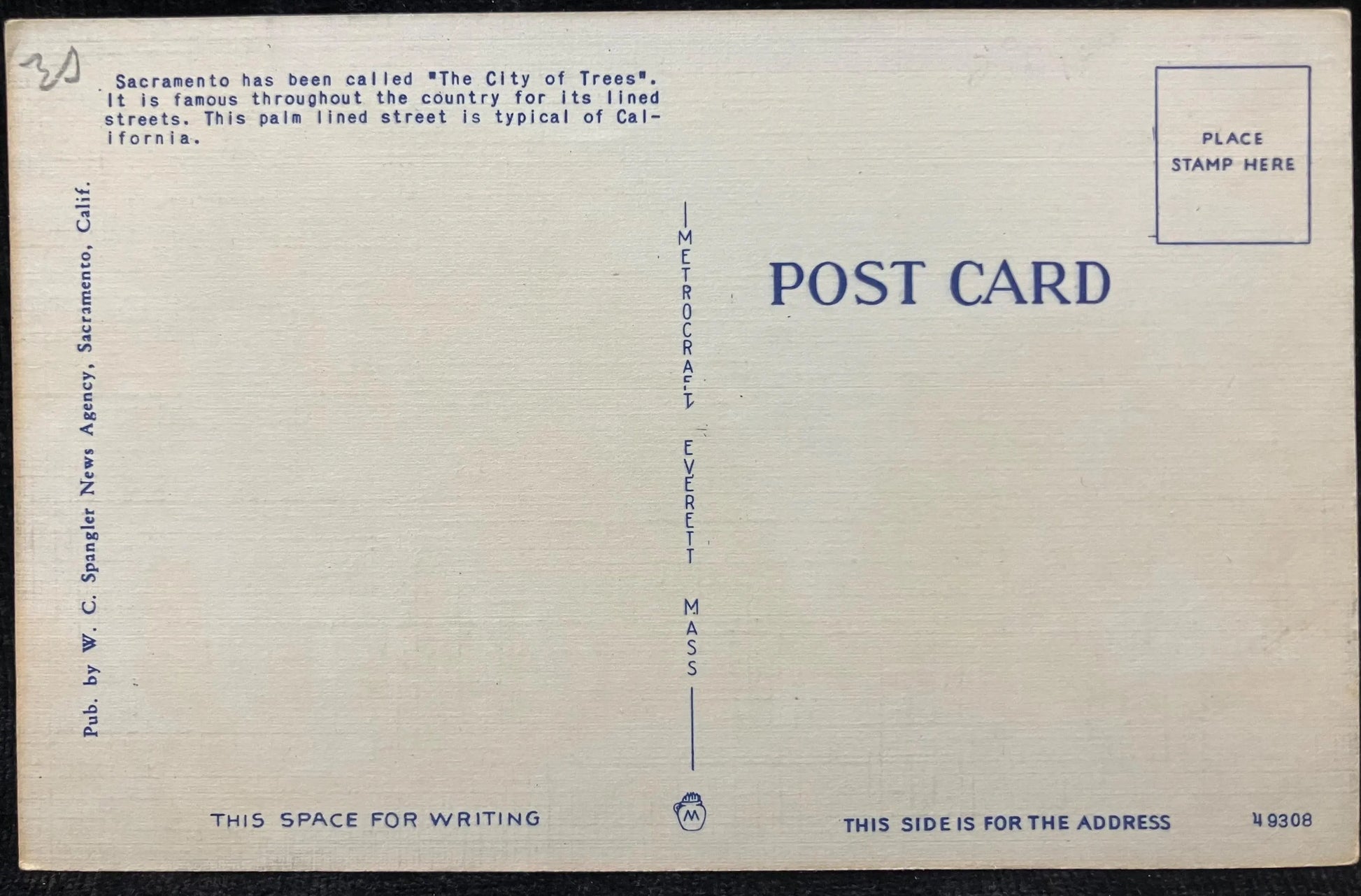 Palm Lined Residence Street, Sacramento, California - Vintage Postcard