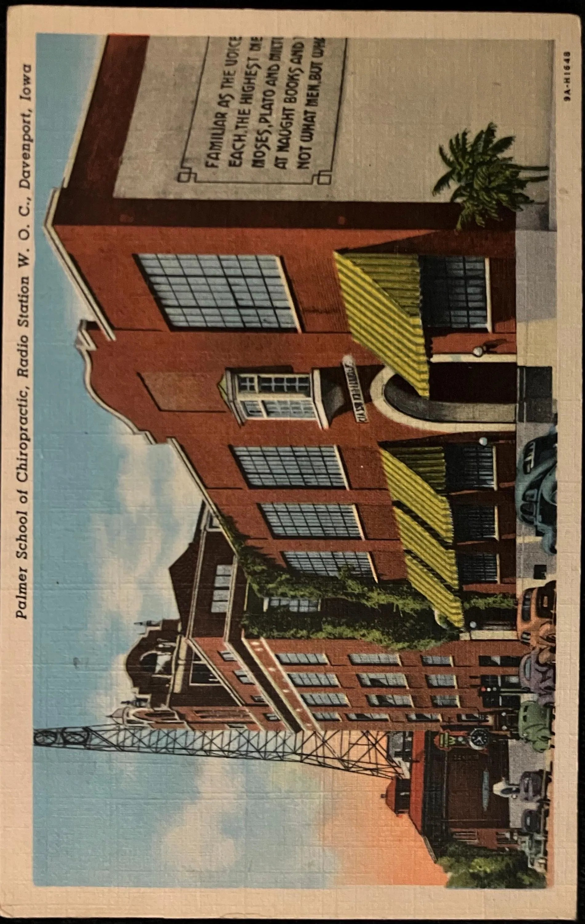 On front: Palmer School of Chiropractic, Radio Station W. O. C., Davenport, Iowa