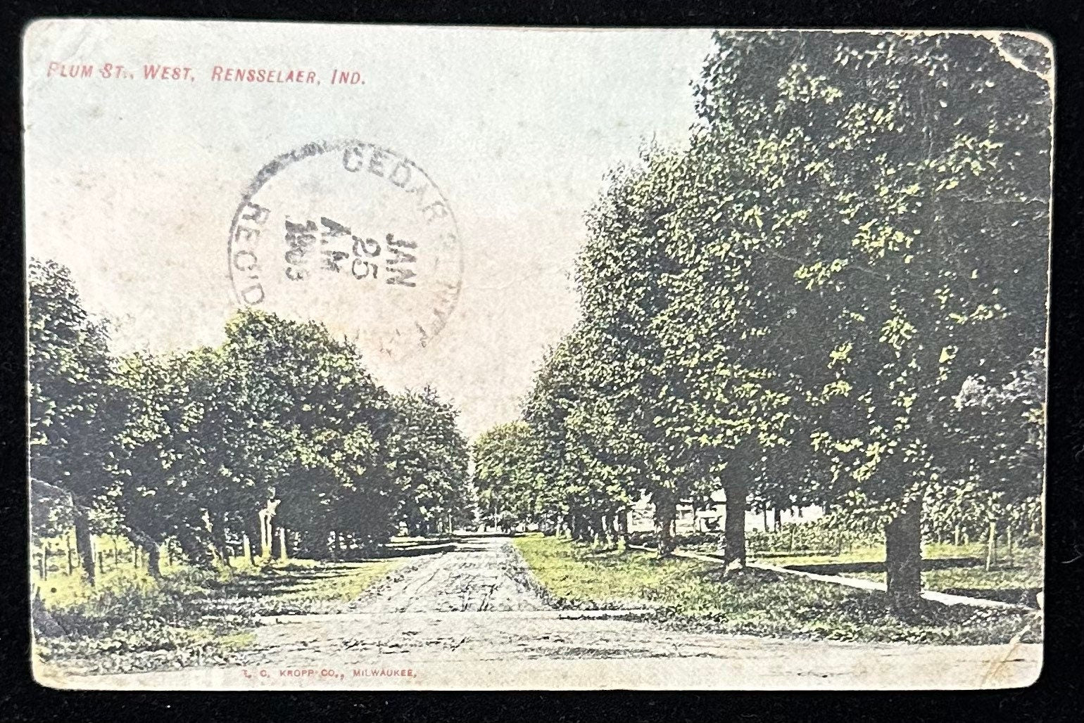 Plum St., West - Rensselaer, Ind. - 1909 Postcard