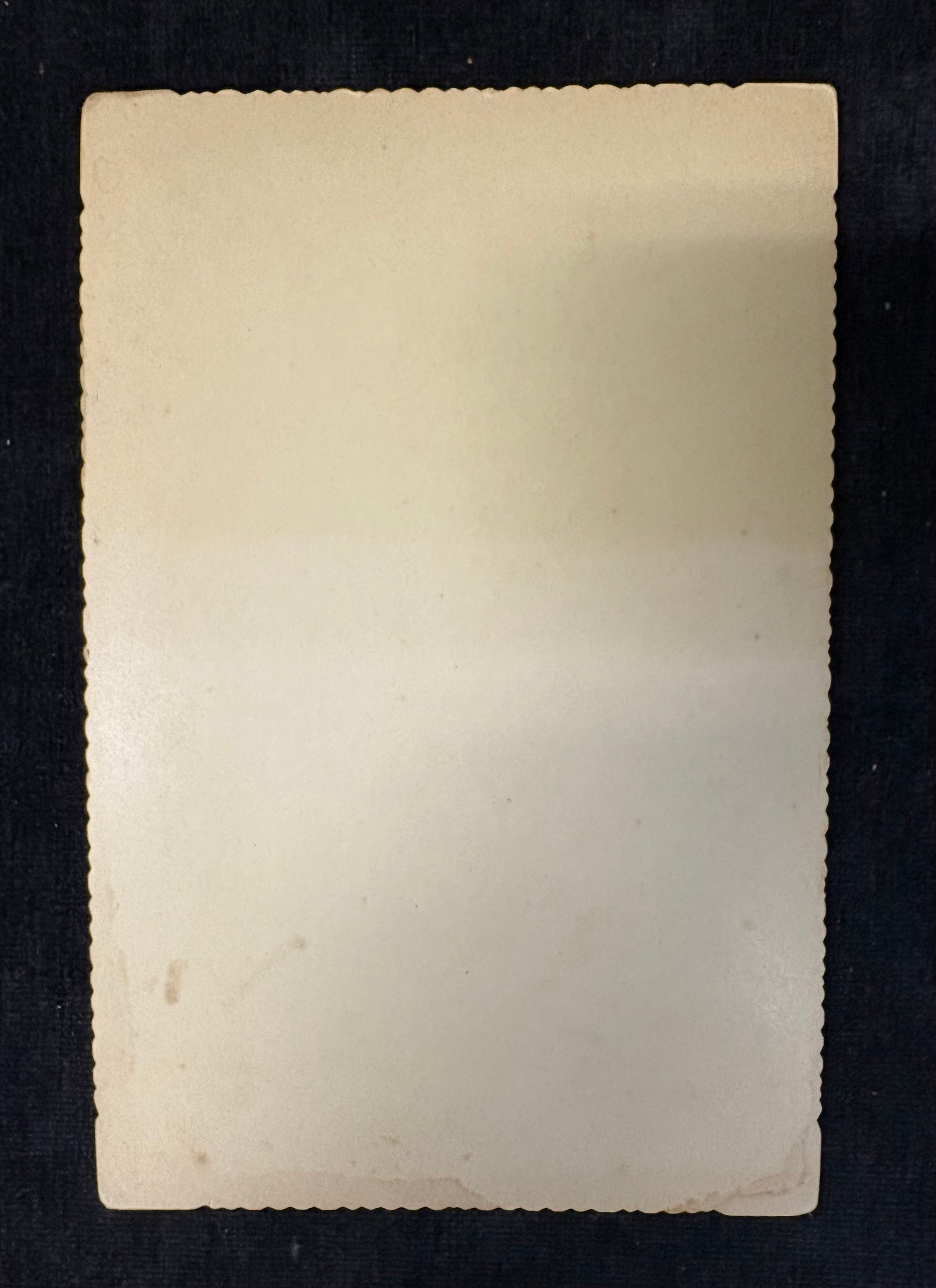 Condition: Slight foxing and discoloration on card and photo, mild staining on back.