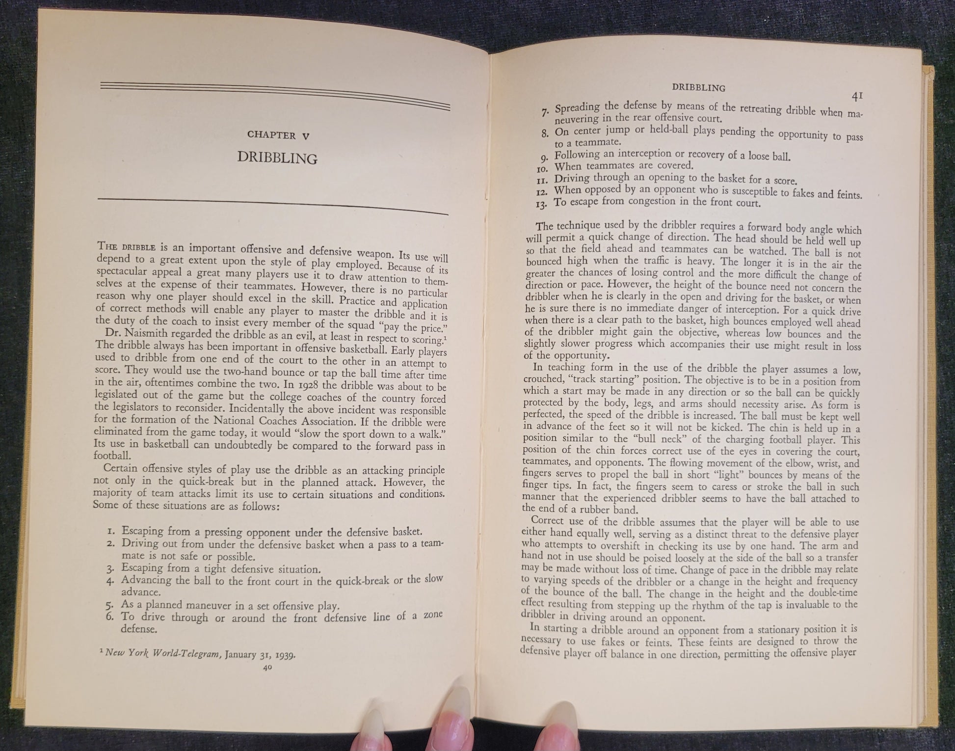 This is a first printing of Clair Bee's second book on basketball. It is written to inform coaches on how to most effectively teach the basics of the game to their players. Bee was a basketball coach spanning from 1925 until 1954. He coached a range of teams, from high school to the NBA. He was inducted into the Basketball hall of fame in 1968. The book is in excellent condition and still has the original dust cover.