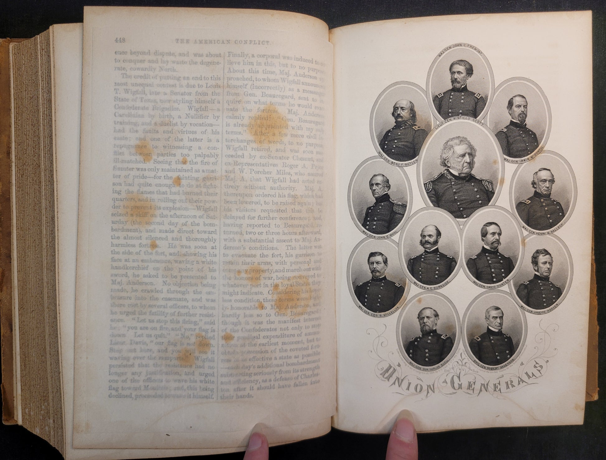 This book is in very good condition, considering it's age. There is considerable chipping on the leather cover and lots of foxing towards the front and back of the inside pages but inner pages are free of foxing. Written during Lincoln's Presidency, this well preserved text was covering both history and current events at the time of its publication.