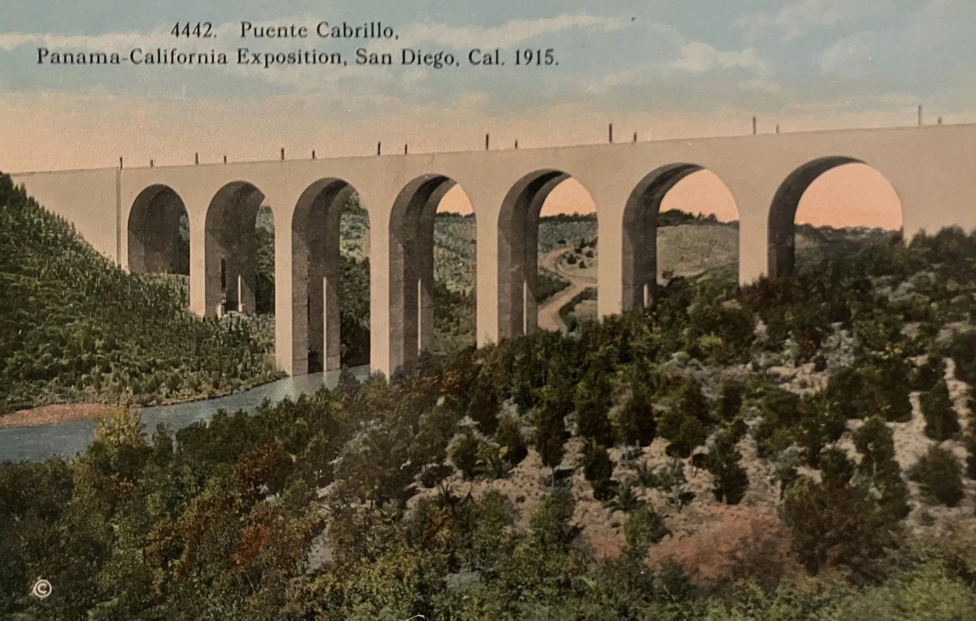 Puente Cabrillo Panama-California Exposition, San Diego, California. 1915 - Vintage Bridge Postcard - High Bridge over valley