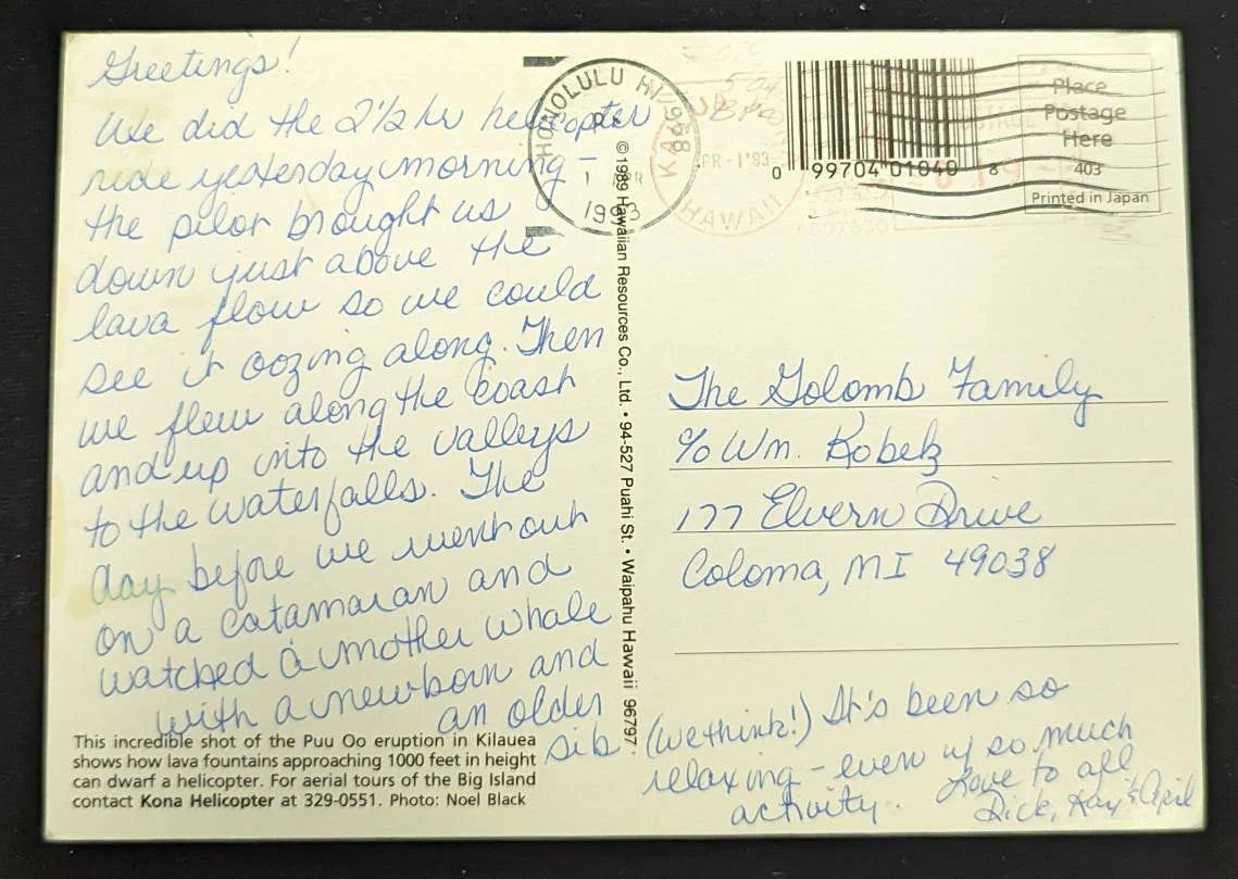 Puu Oo Eruption in Kilauea, Honolulu, Hawaii - Photo by Noel Black - Vintage Hawaii Postcard