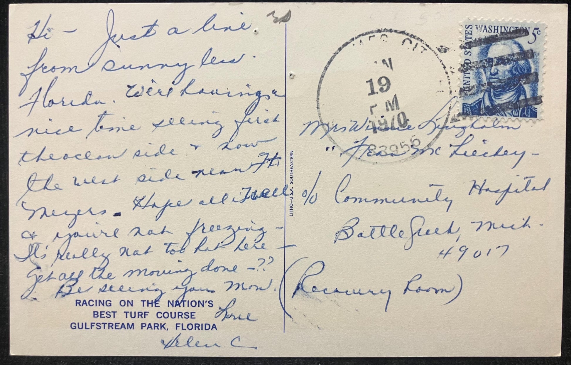 Racing the Nation’s Best Turf Course, Gulfstream Park, Florida - Vintage Racehorse Postcard