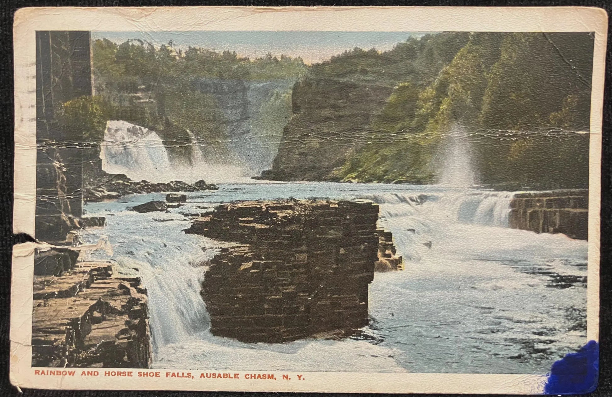 Rainbow and Horse Show Falls, Ausable Chasm, New York - Vintage Waterfall Postcard