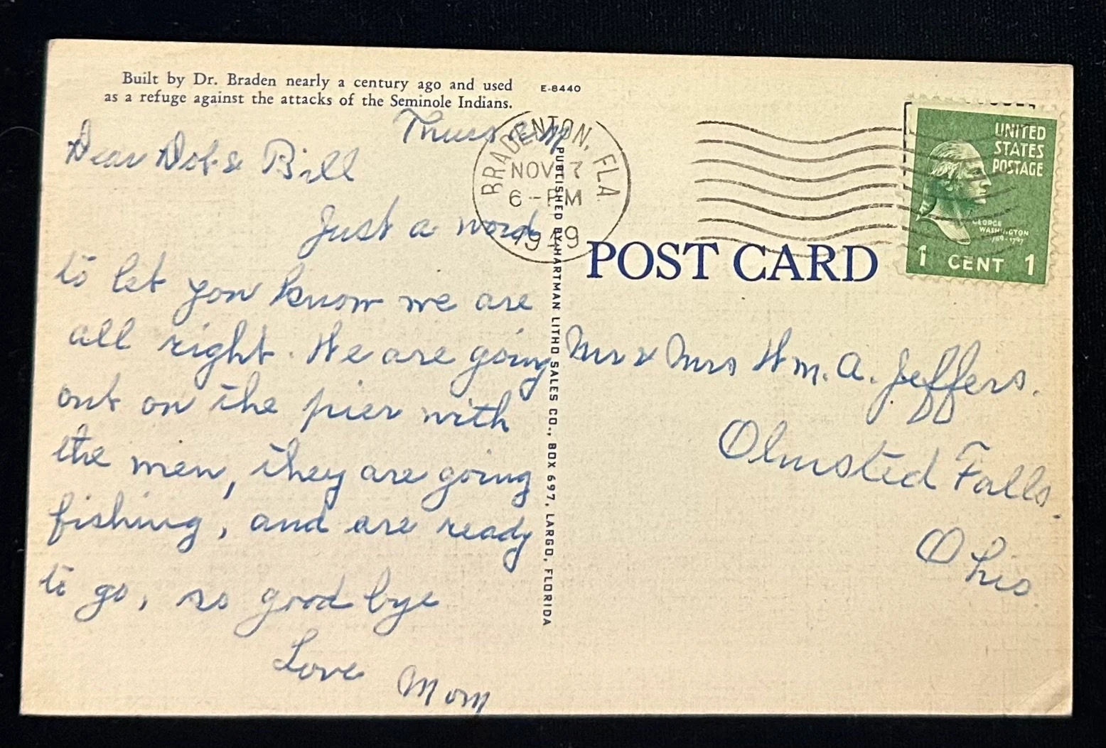Back Information: Built by Dr. Braden nearly a century ago and used as a refuge against the attacks of the Seminole Indians.