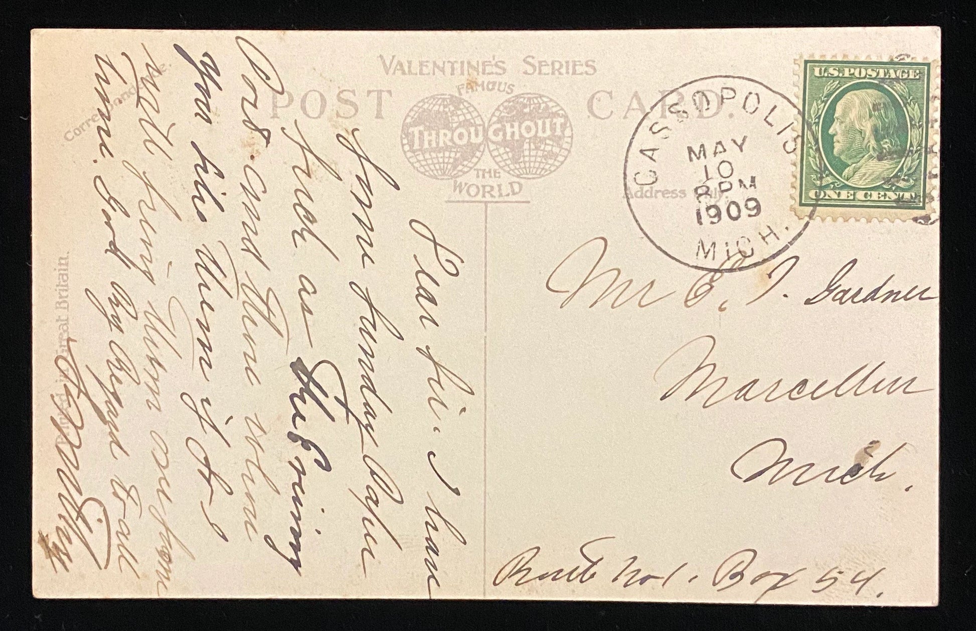 Mailed. Postmark May 10, 1909. Green one cent stamp