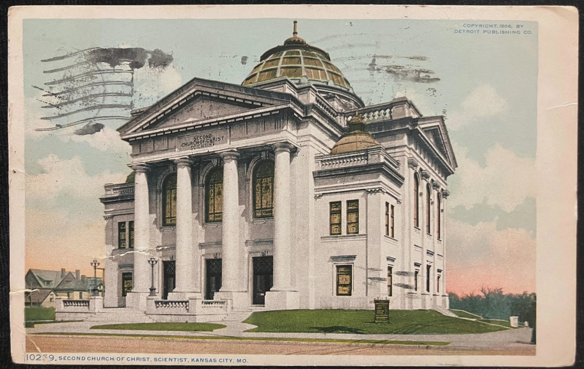 On front: Second Church of Christ, Scientist, Kansas City, MO. Copyright, 1906, by Detroit Publishign Co.