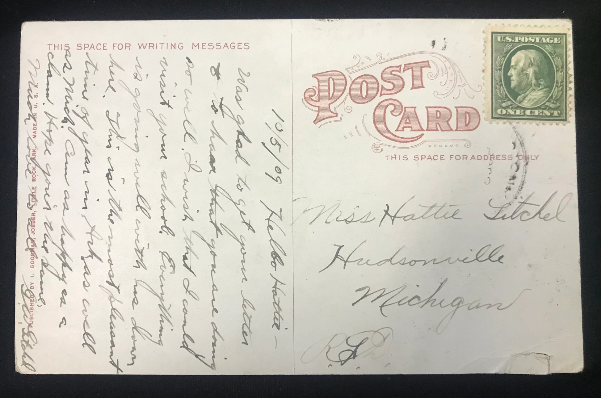 Mailed to Hudsonville Michigan. Green one cent stamp. Post mark worn off.