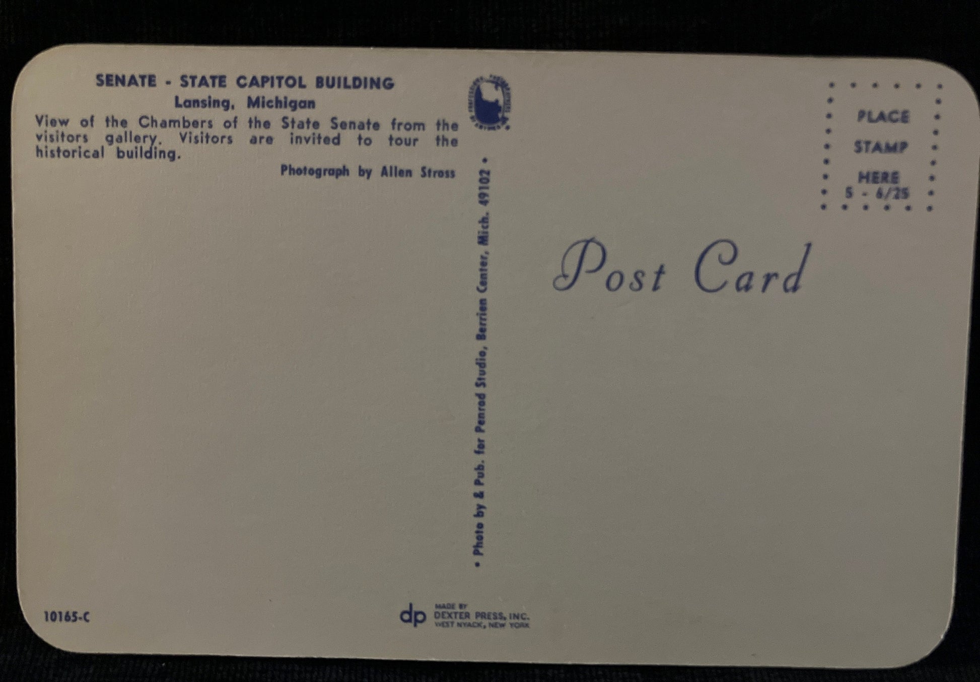 State Senate - Capitol Building in Lansing, Michigan - Photo by Allen Stross - Vintage Government Postcard