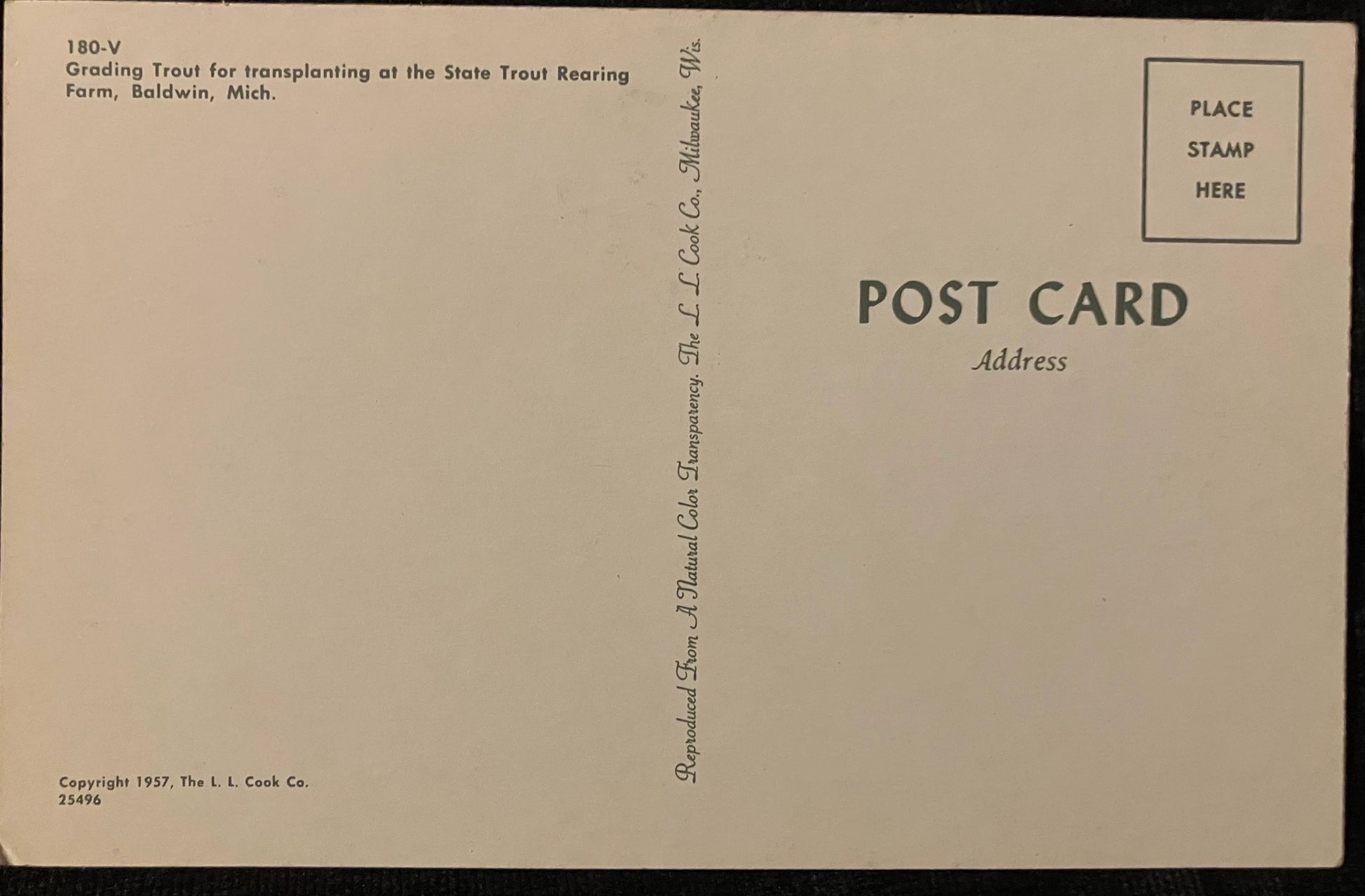 On front: State Trout Rearing Farm in Baldwin, Michigan