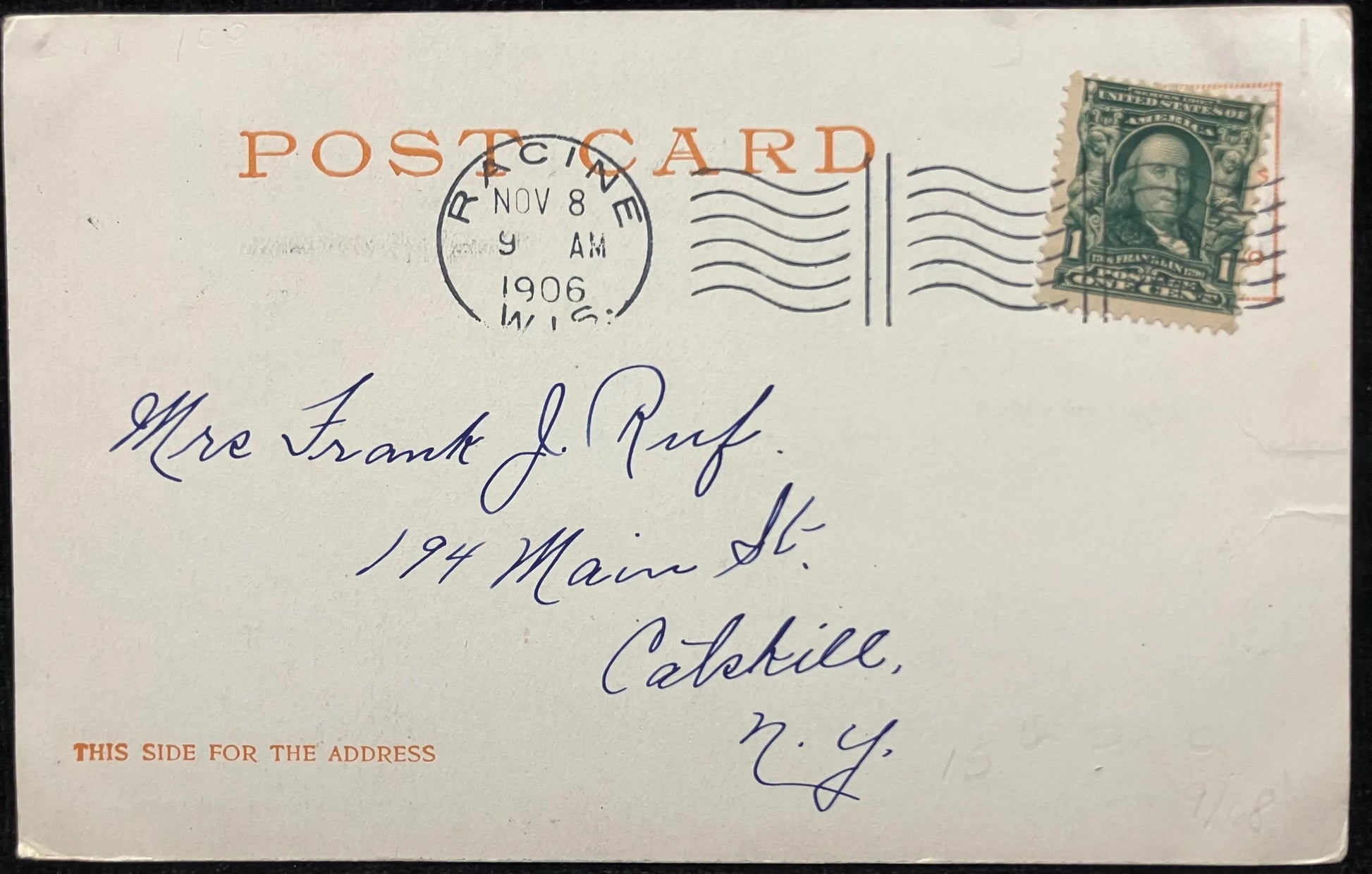 Mailed: Postmark: 1906 green one cent Benjamin Franklin stamp