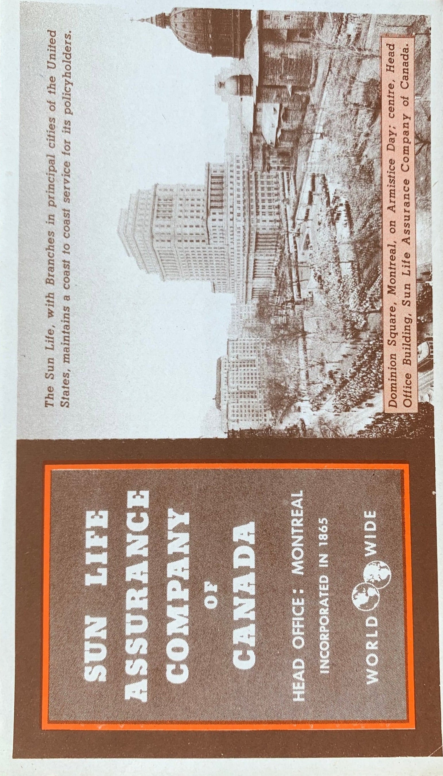 Dominion Square, Montreal on Armistice Day; centre, Head Office Building, Sun Life Assurance Company of Canada."