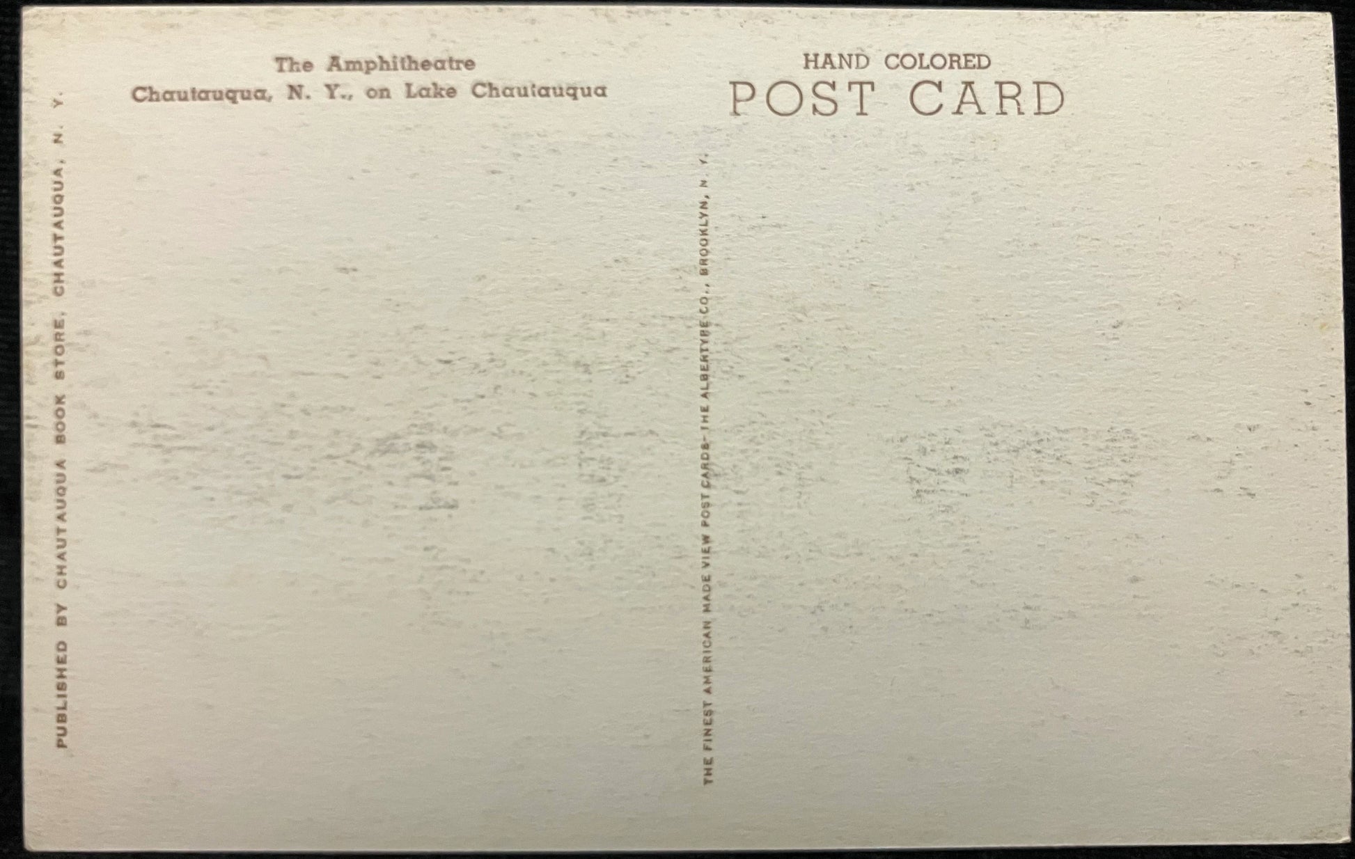 On back: The Amphitheatre Chatauqua, N. Y., on Lake Chautauqua