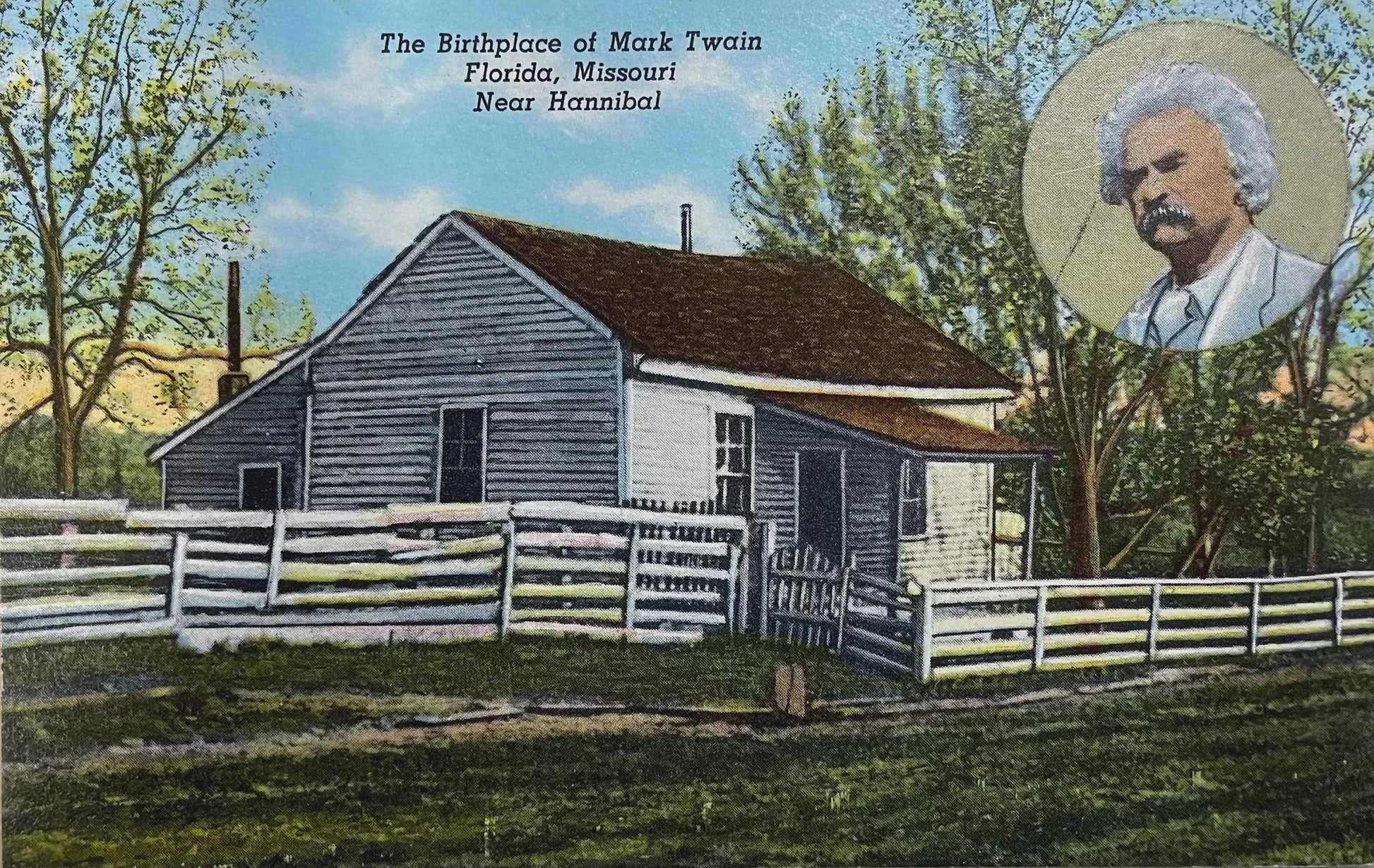 The Birthplace of Mark Twain, Florida, Missouri, Near Hannibal, Missouri - Vintage Linen Postcard