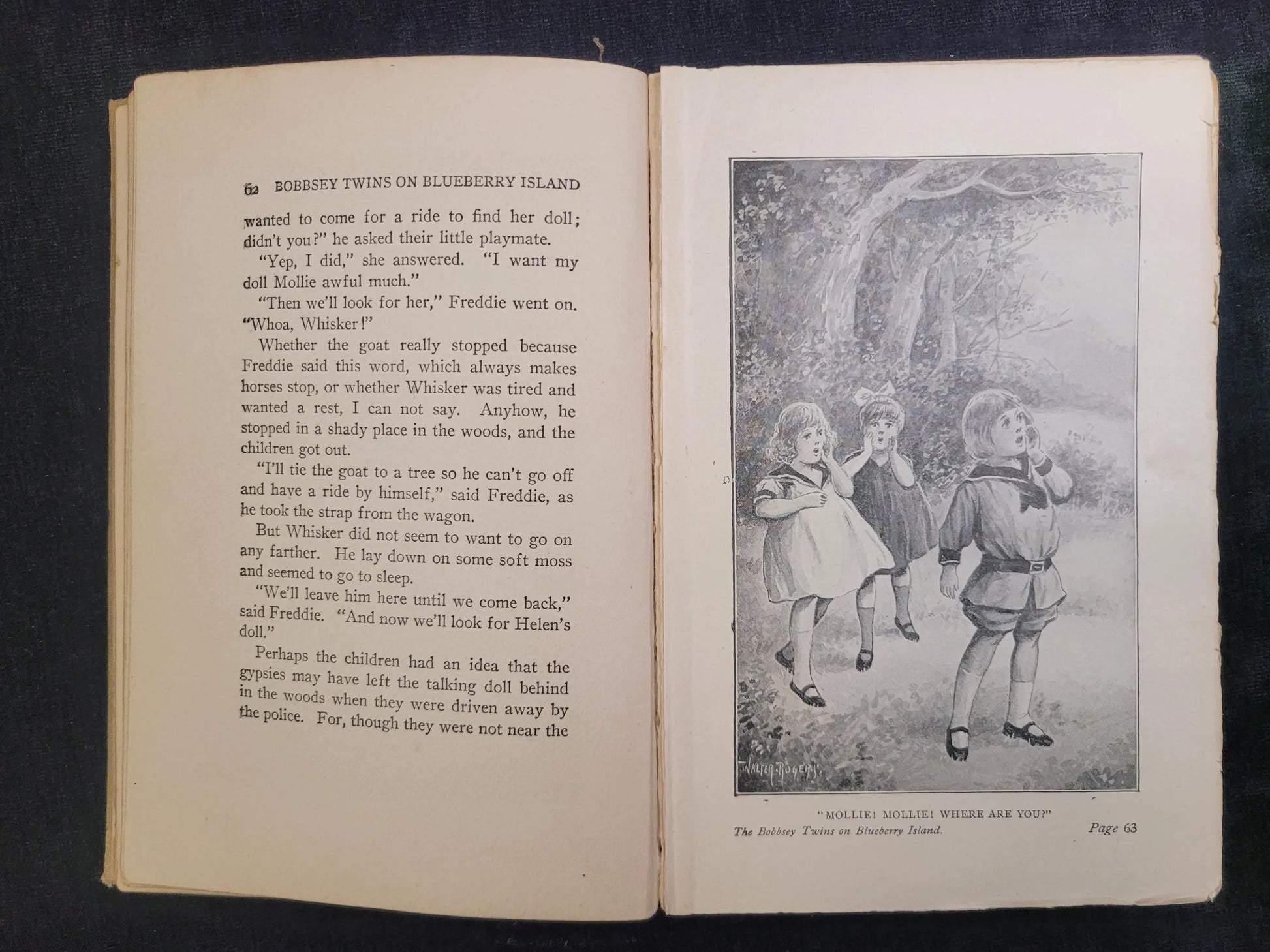 This book is the 10th in the 72-book Bobbsey Twins series by Laura Lee Hope. The children's mystery/adventure series follows the Bobbsey siblings who investigate mysteries. This specific book follows the children on a summer adventure to a strange island.