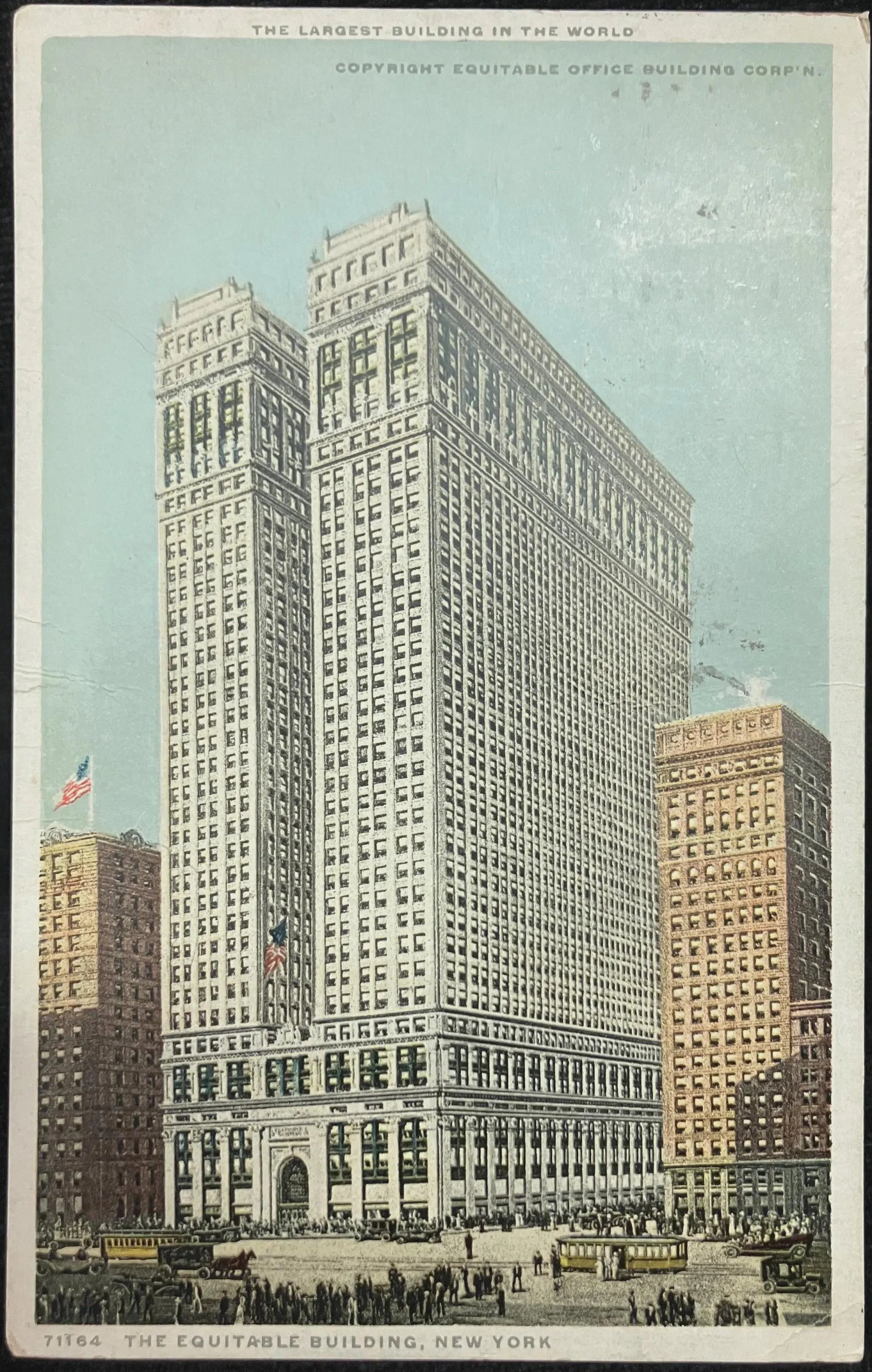 On front: The Largest Building in the World. The Equitable Building, New York. Copyright Equitable Office Building Corp’n