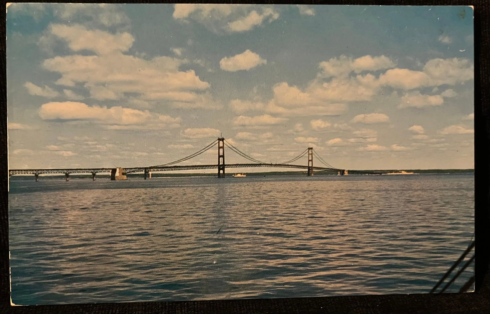 The Mackinac Bridge - State of Michigan - Photo: Lucy Gridley - Vintage Bridge Postcard