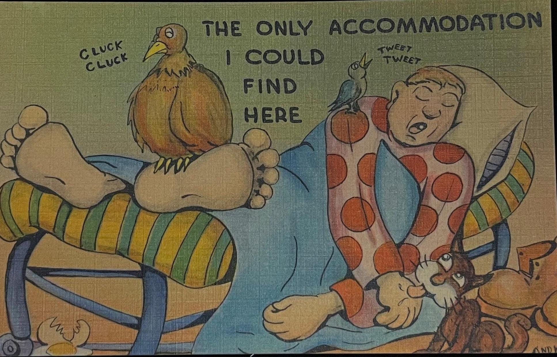 The Only Accommodation I Could Find Here - Linen Postcard