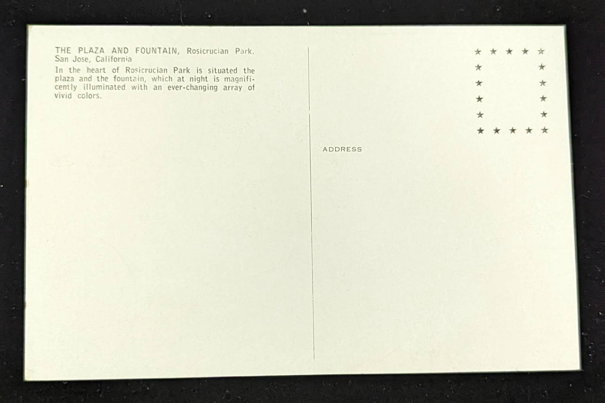 The Plaza and Fountain - Rosicrucian Park - San Jose, California - Vintage Postcard