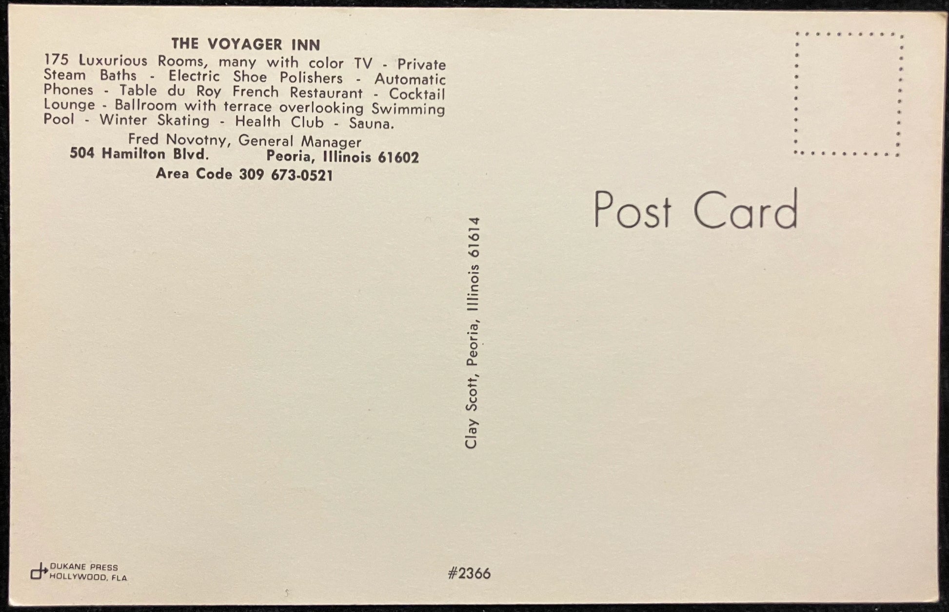 The Voyager Inn - Peoria, Illinois - Vintage Hotel Postcard