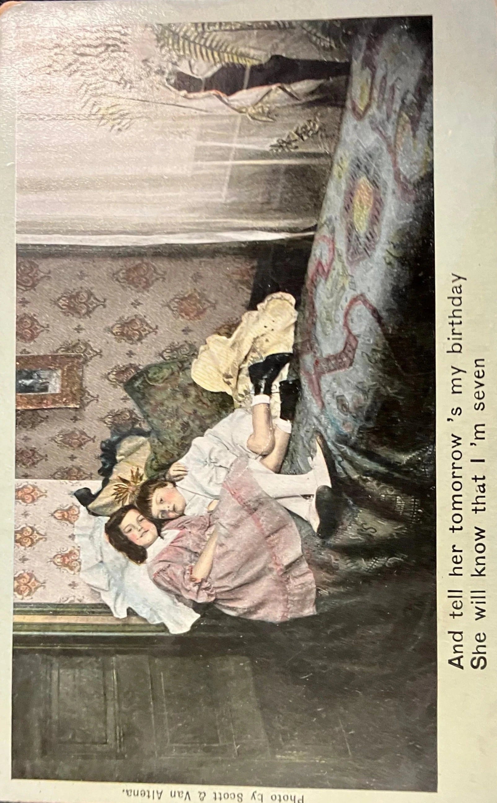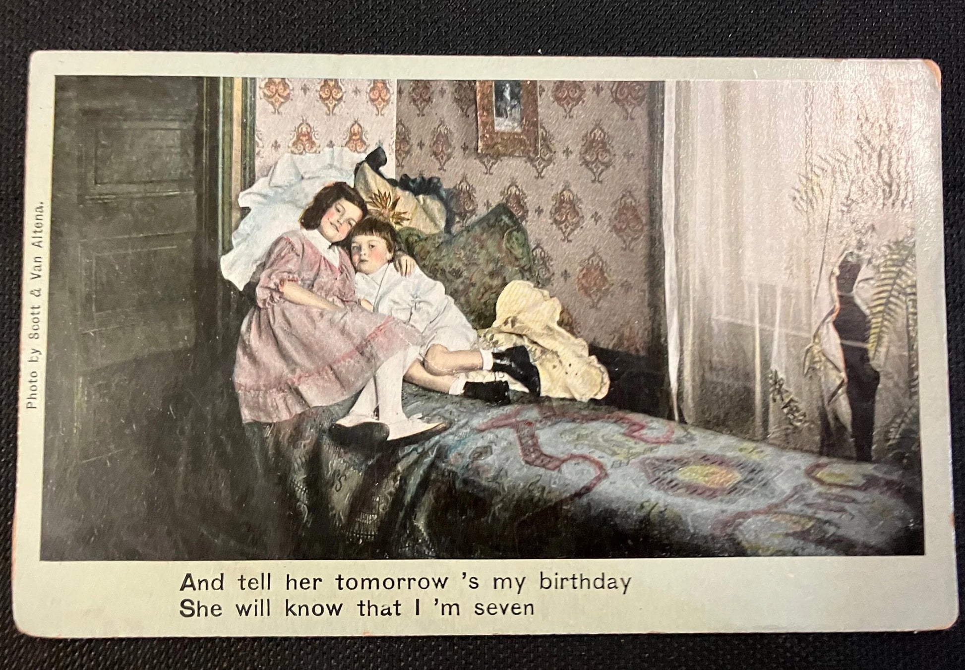 Theodor Eismann - And tell Her tomorrow’s my birthday she will know that I’m seven - Vintage Illustrated Song Series - Hand tinted Postcard