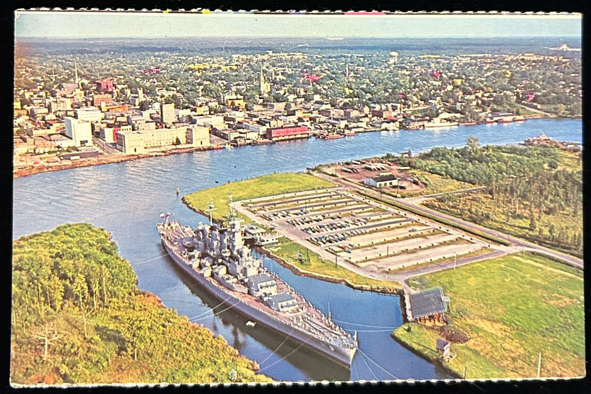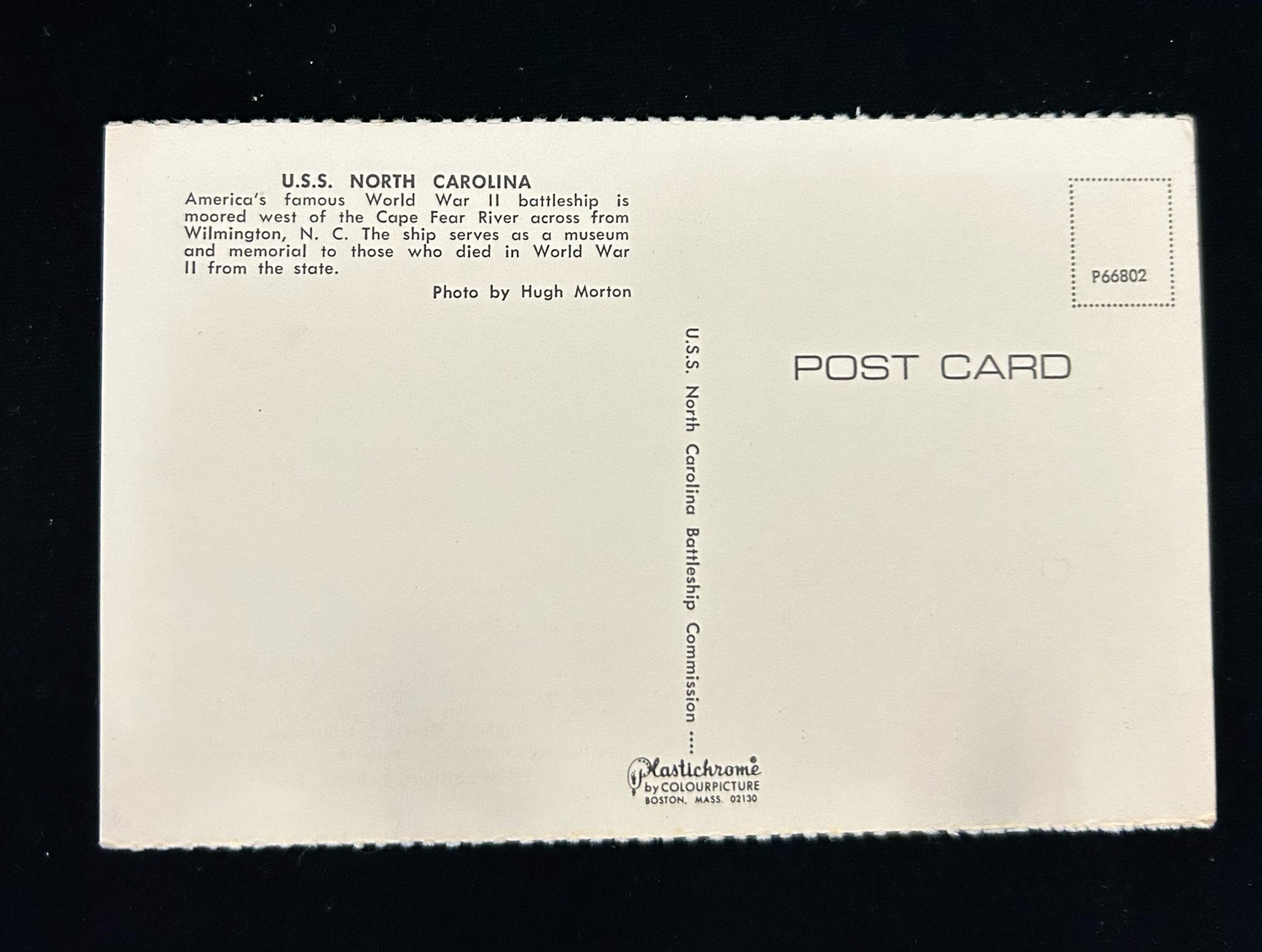Back information: U.S.S. North Carolina- America's Famous World War II battleship is moored west of the Cape Fear River across from Wilmington, N.C. The Ship serves as a museum and memorial to those who died in World War II from the state.