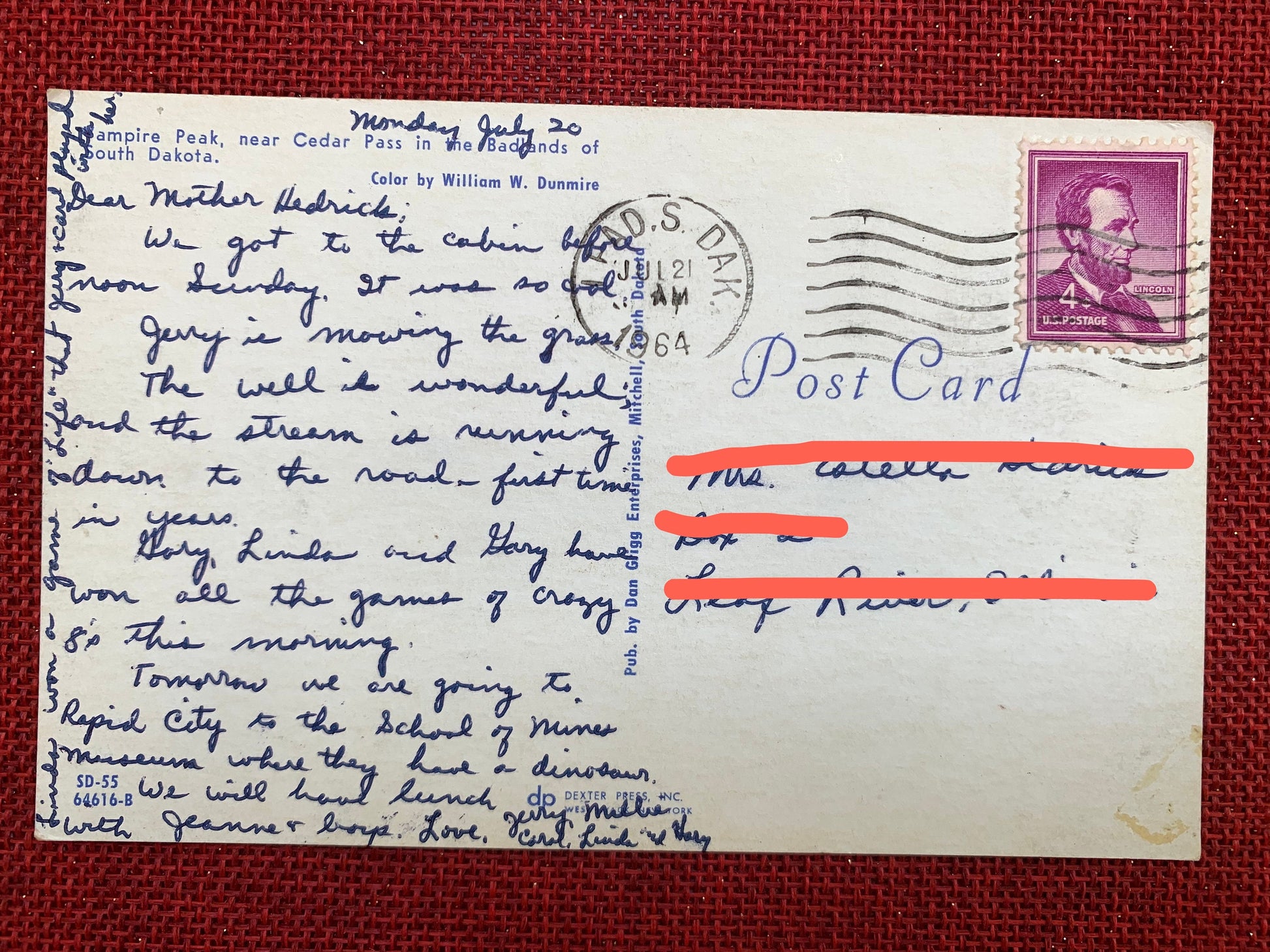 Postmark: July 21, 1964 – [unclear], South Dakota