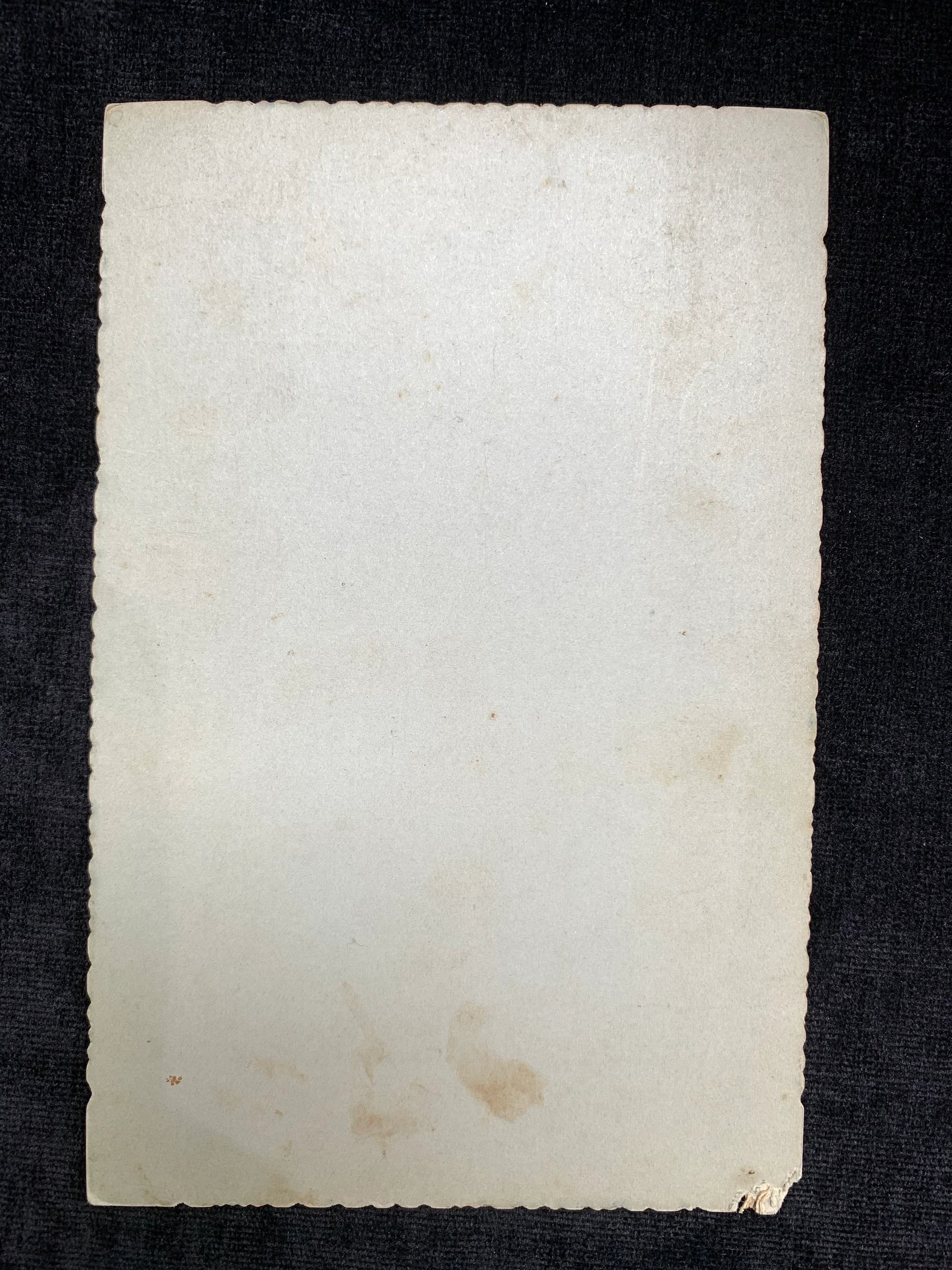 This photograph features a baby in a white gown, probably for a Baptismal celebration, sitting on a sofa. The baby looks very healthy and most likely had wealthy parents, given his clothing, health and the setting. The photograph was taken at The Wood Studio in Kalamazoo, Michigan between 1896 and 1897 when the studio was open. The edges of the card are gold.